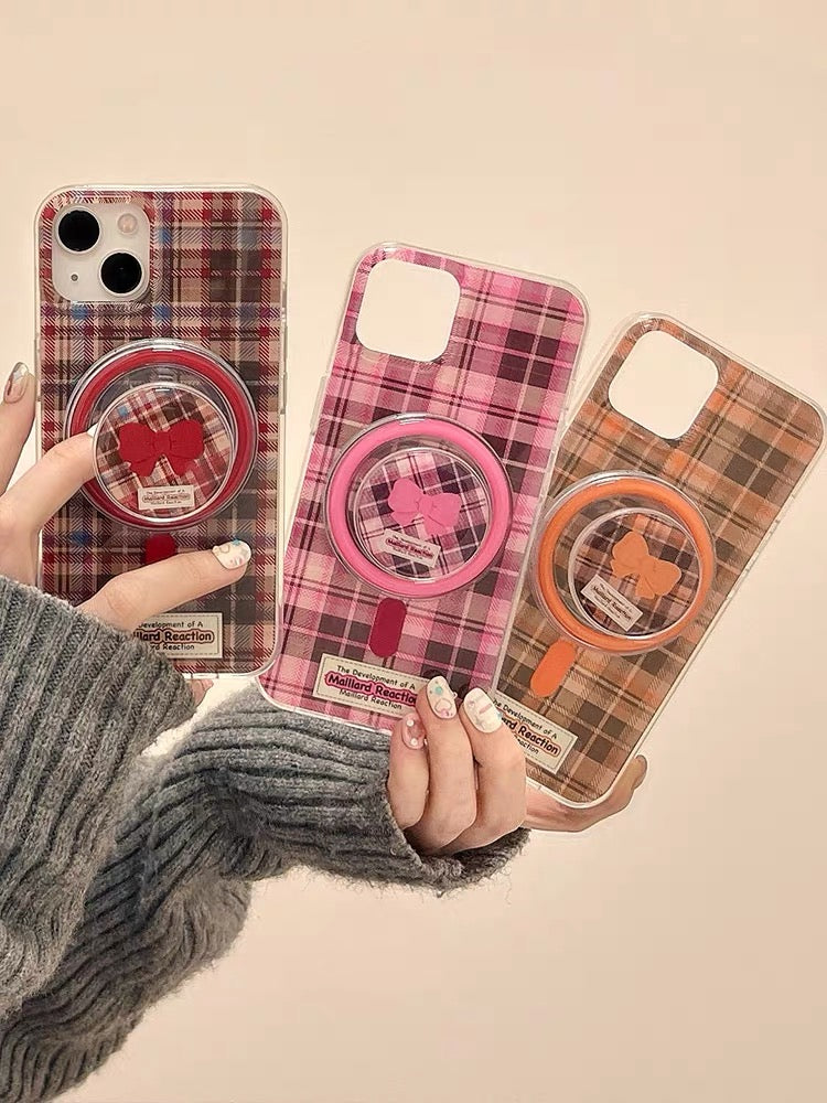 iPhoneケース 持ち手 チェック柄 おしゃれ スマホケース