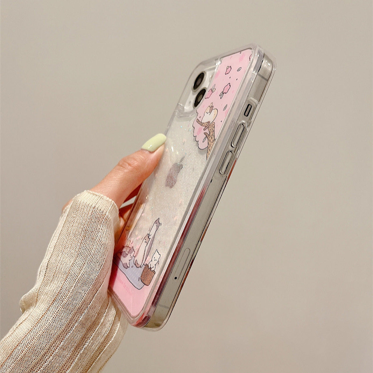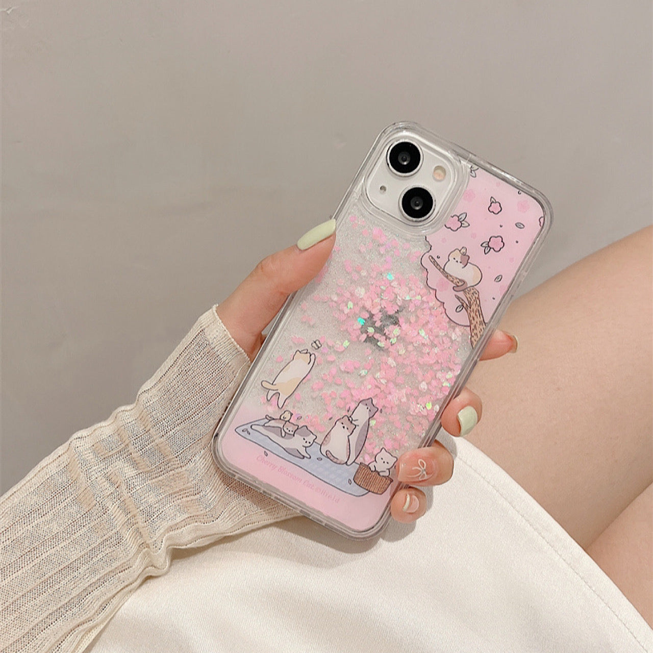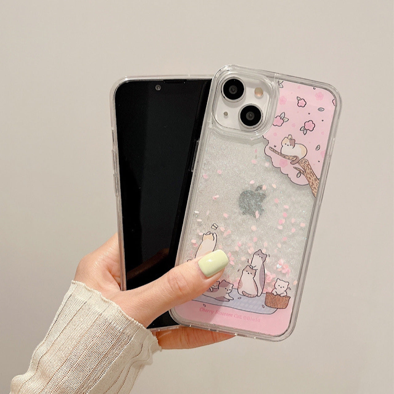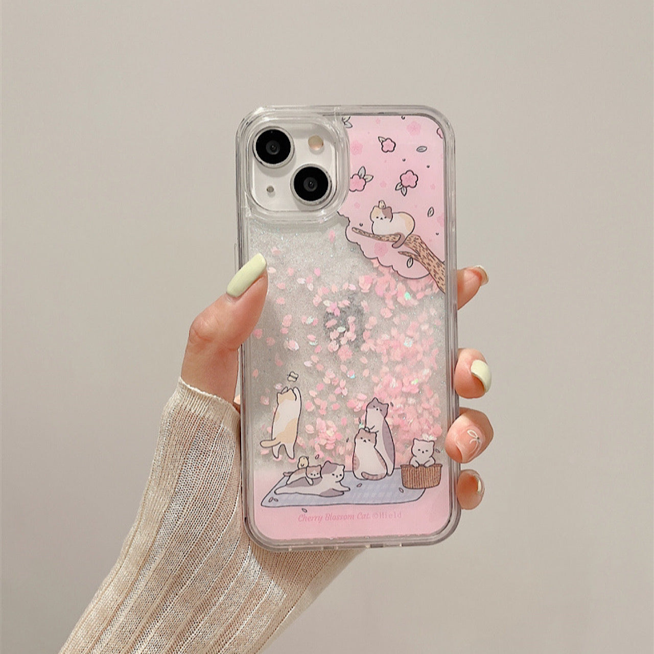 iPhoneケース かわいい 桜見 ねこ キラキラ ピンク スマホケース