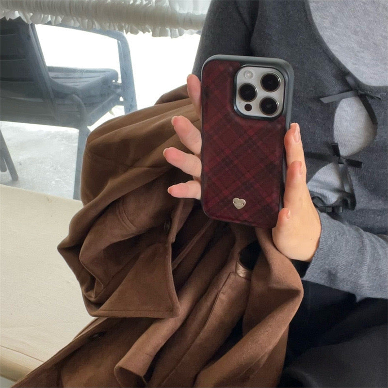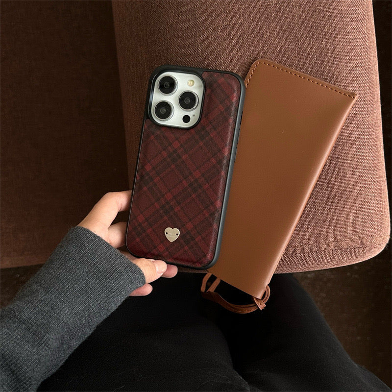 iPhoneケース おしゃれ チェック柄 赤い スマホケース