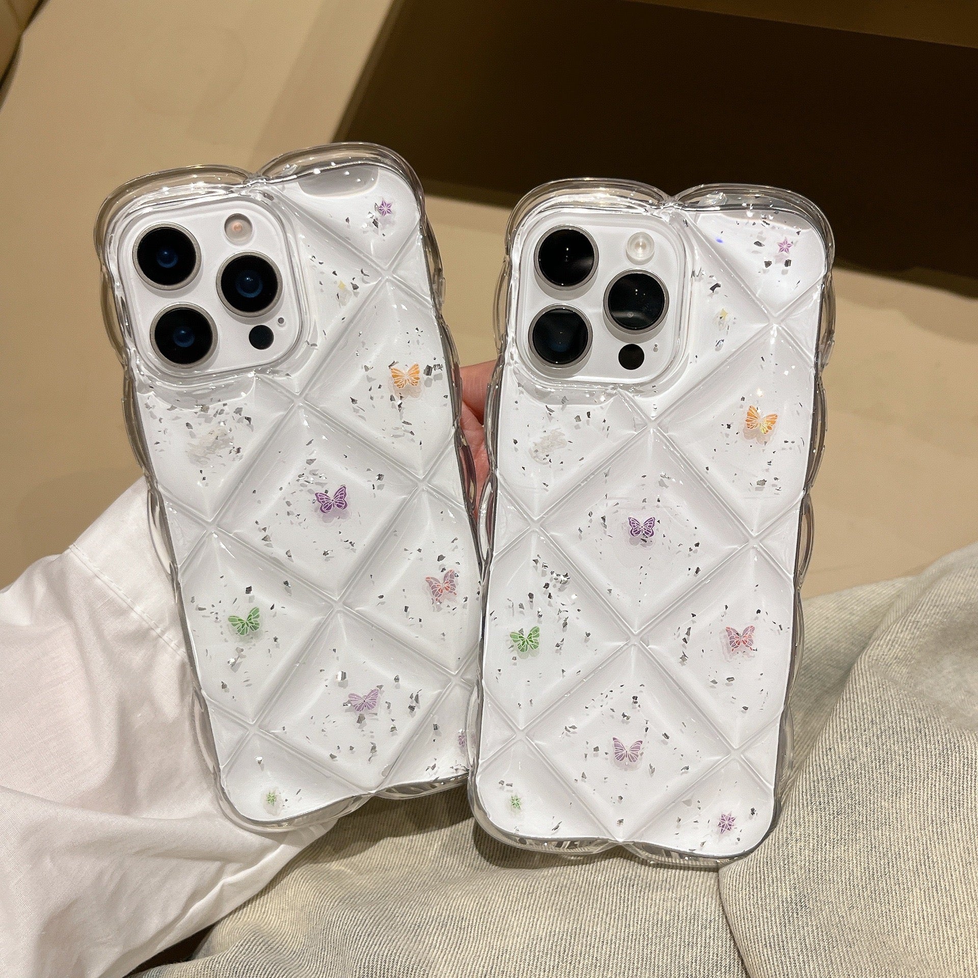 iPhoneケース おしゃれ カラフル 蝶々 凹凸 韓国 スマホケース