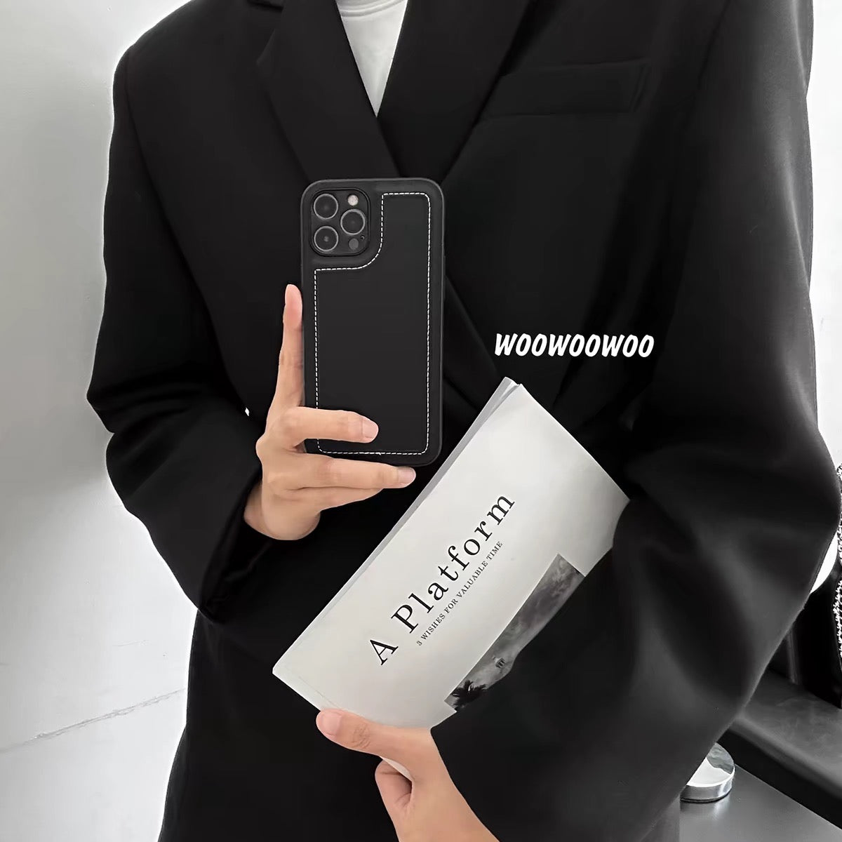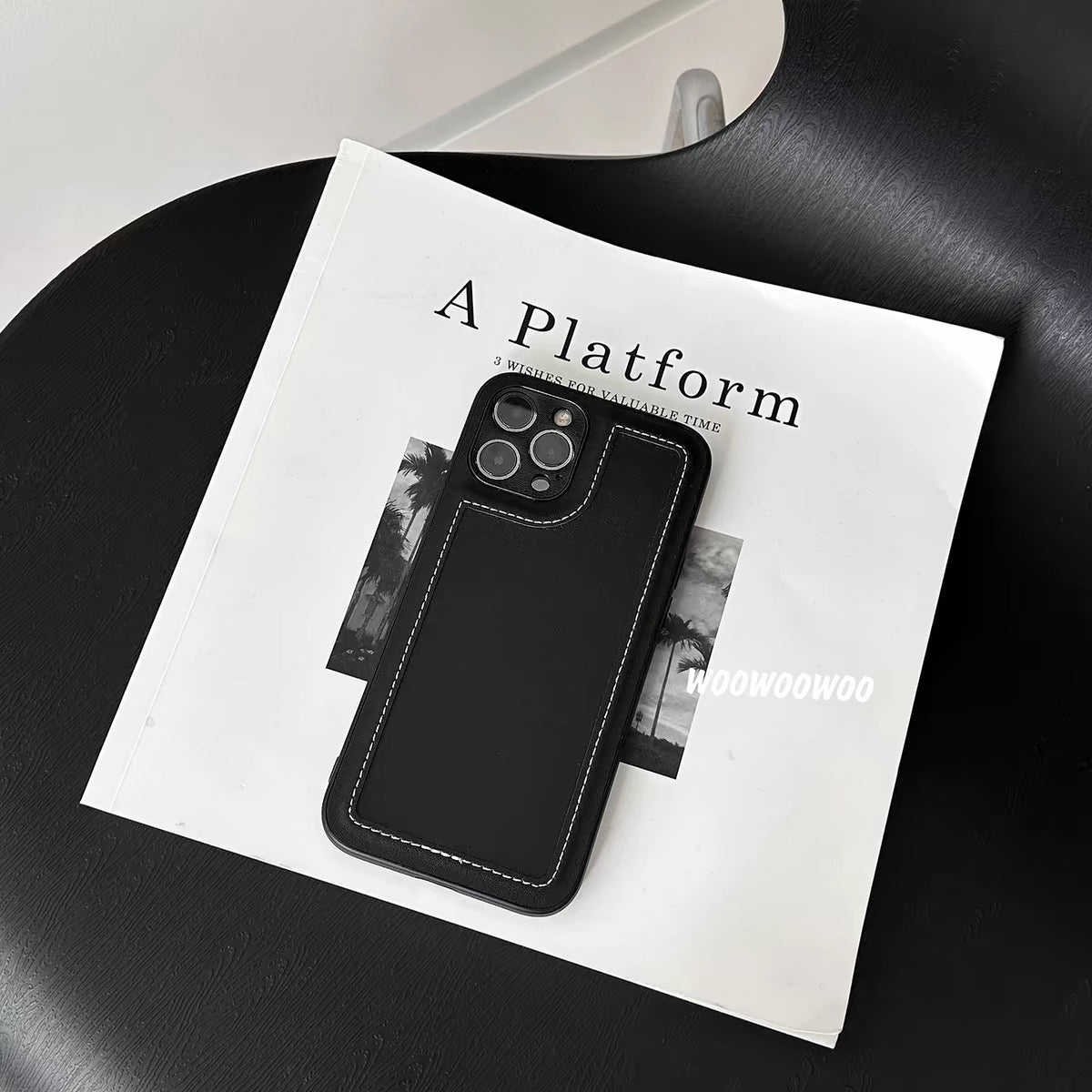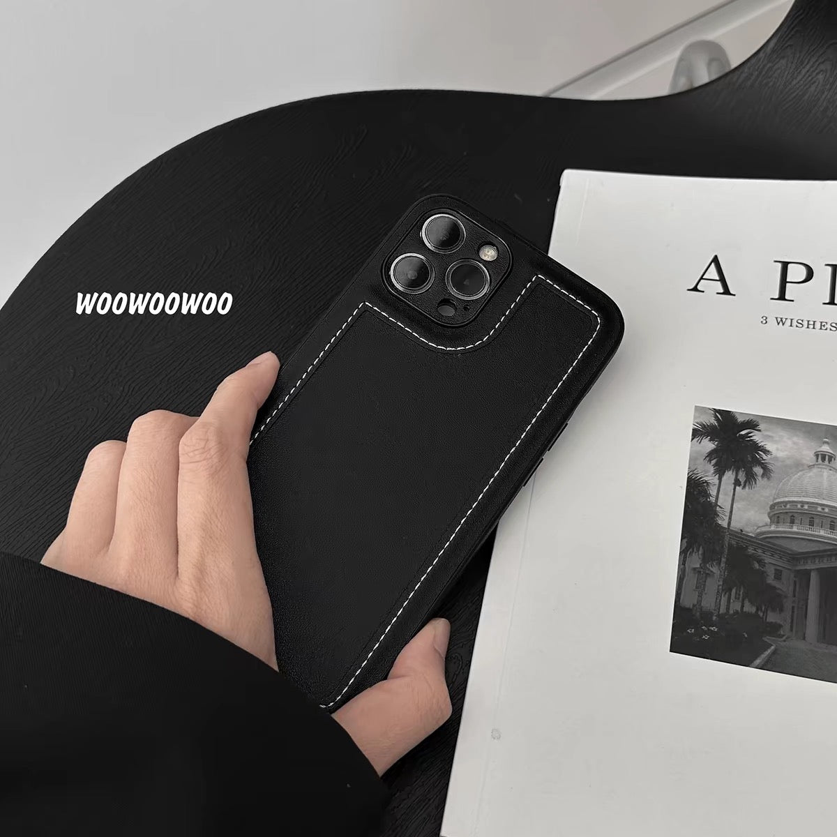 iPhoneケース おしゃれ 革質 高級感 ブラック スマホケース