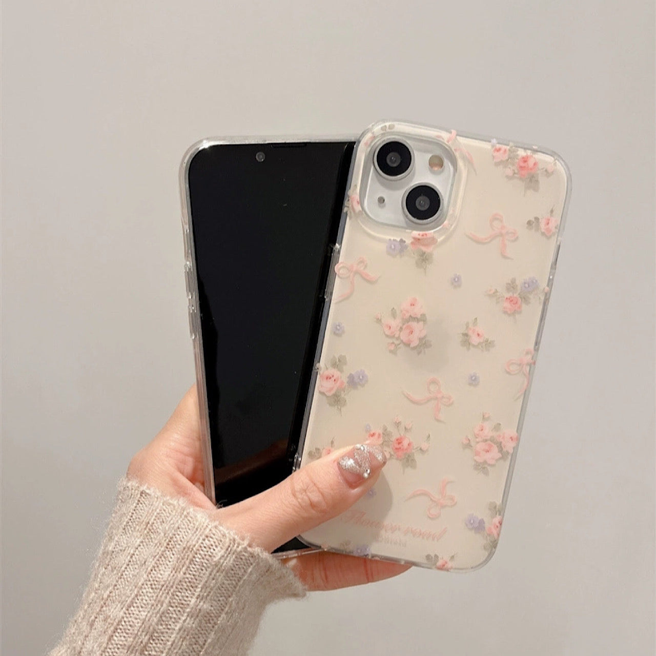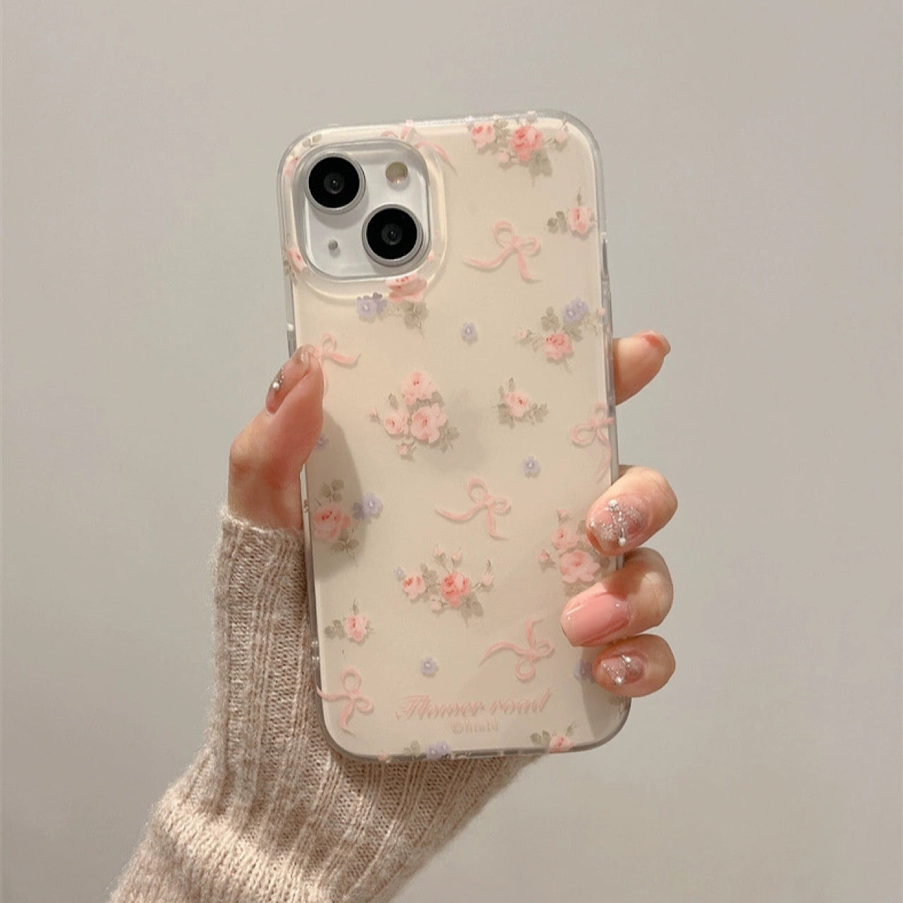 iPhoneケース かわいい ピンク フラワー リボン スマホケース