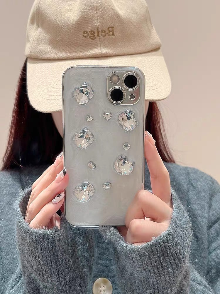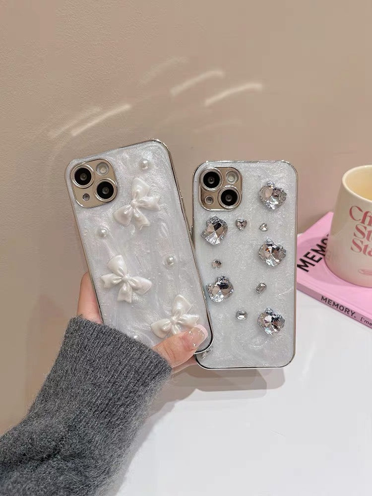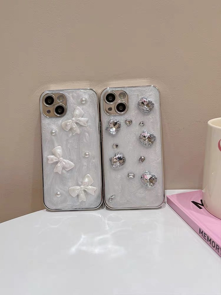 iPhoneケース おしゃれ キラキラホワイトケース ハート