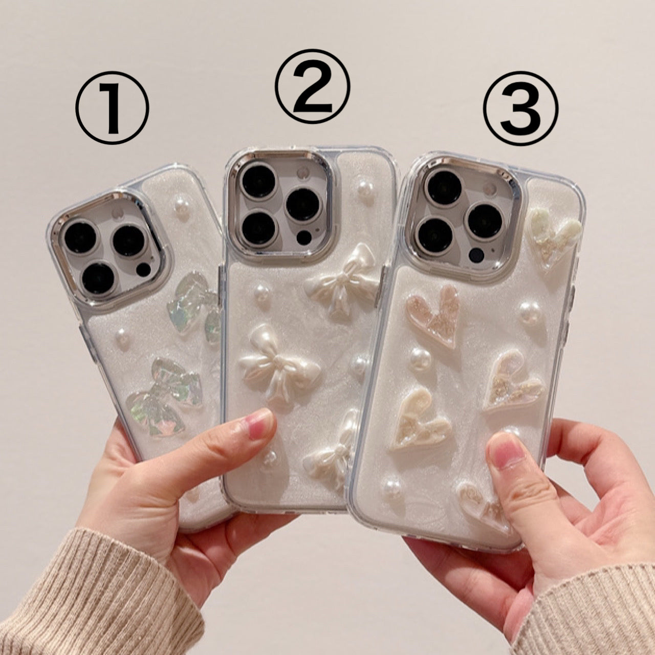 iPhoneケース おしゃれ 立体 ハート リボン ホワイト スマホケース