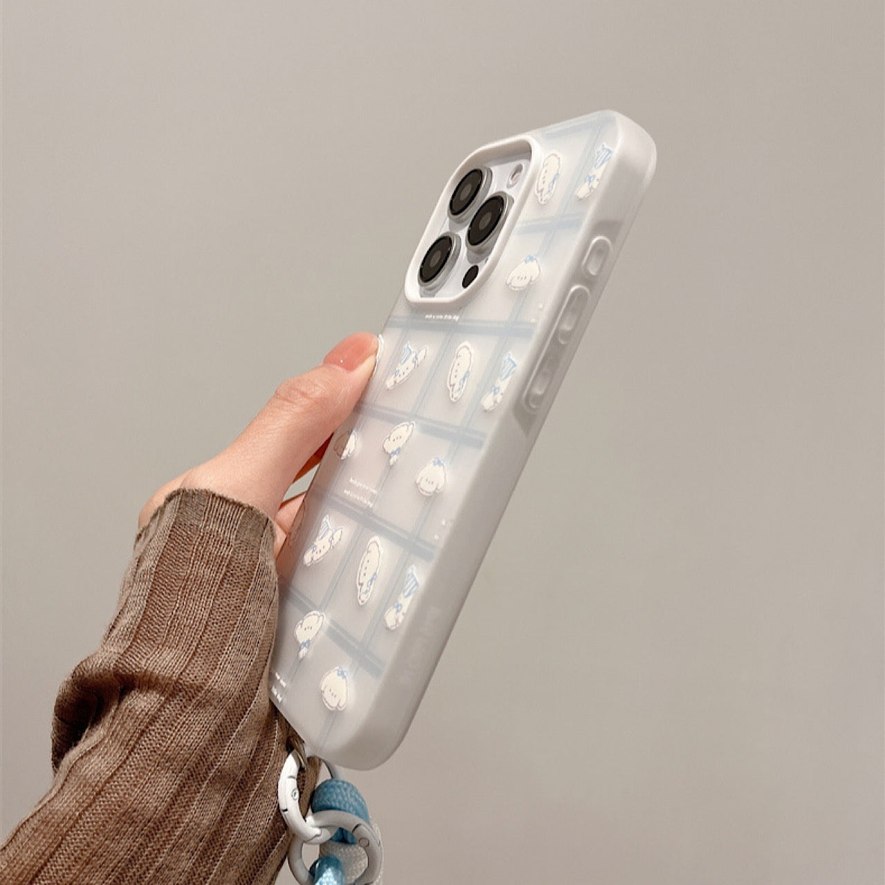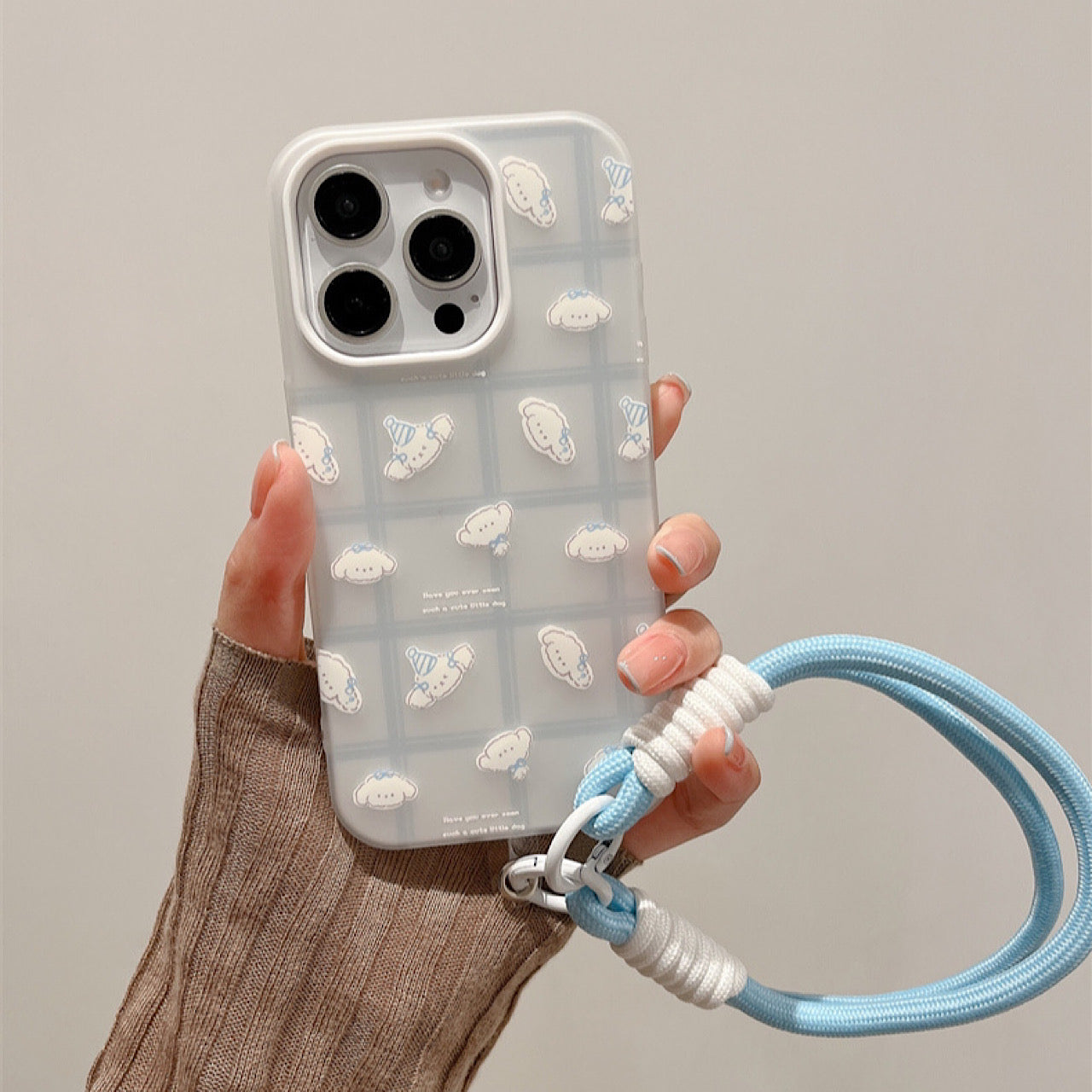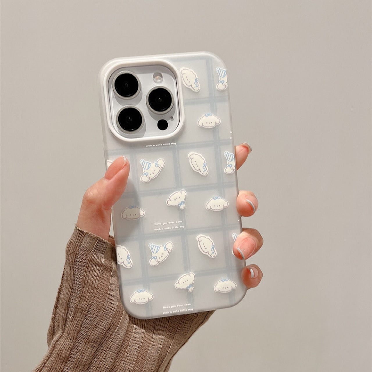 iPhoneケース かわいい 白犬 チェック柄 スマホケース
