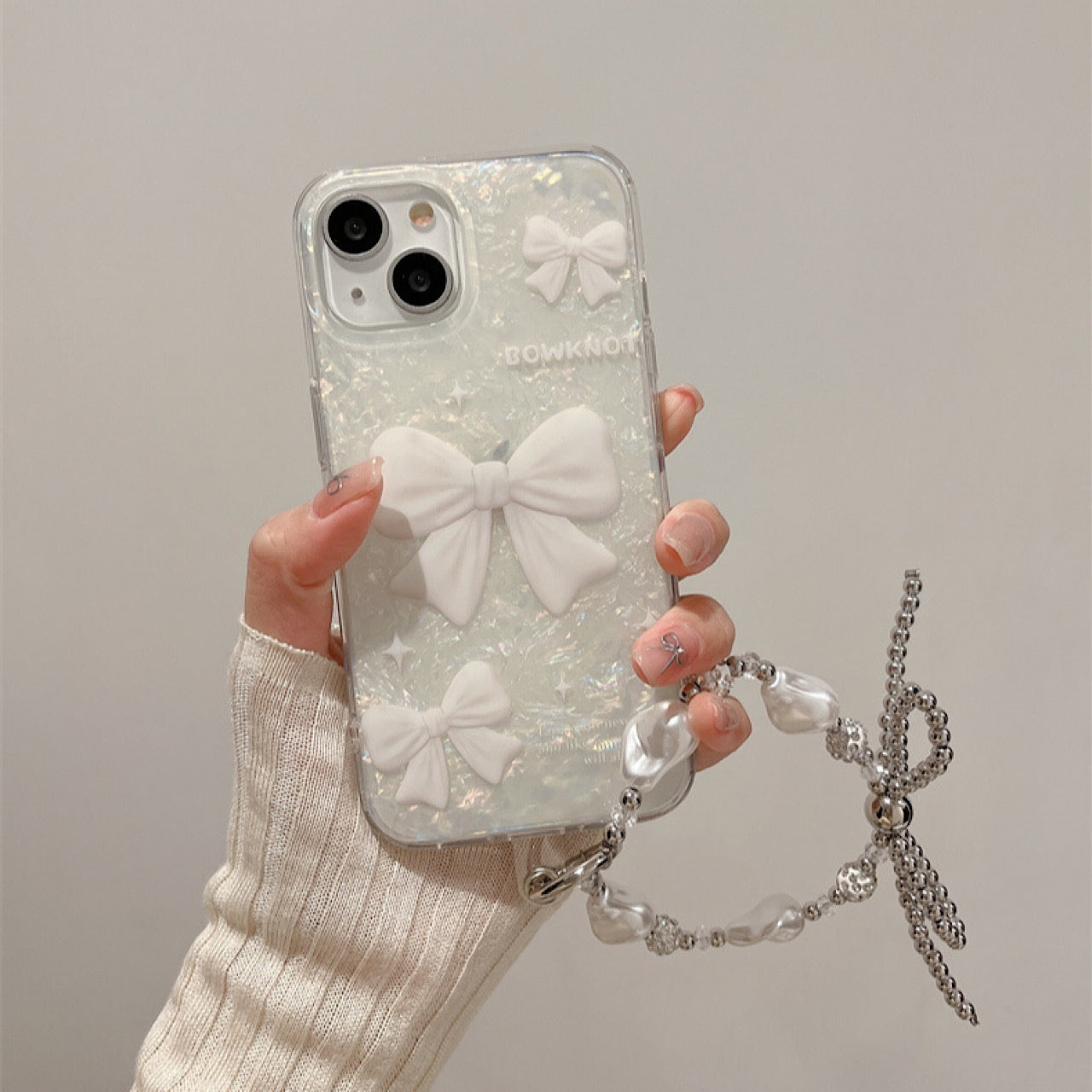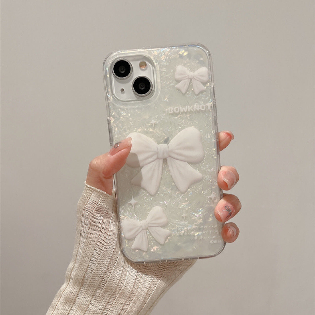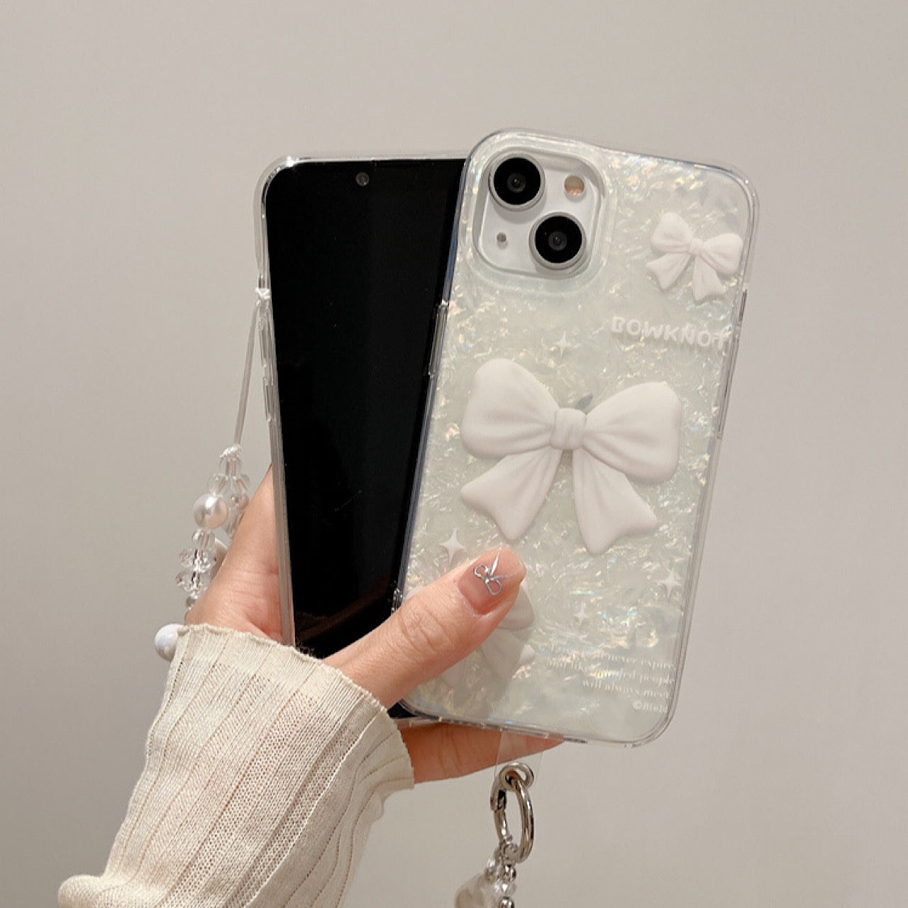 iPhoneケース おしゃれ 立体 リボン ホワイト スマホケース