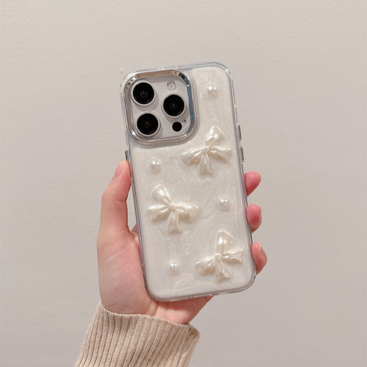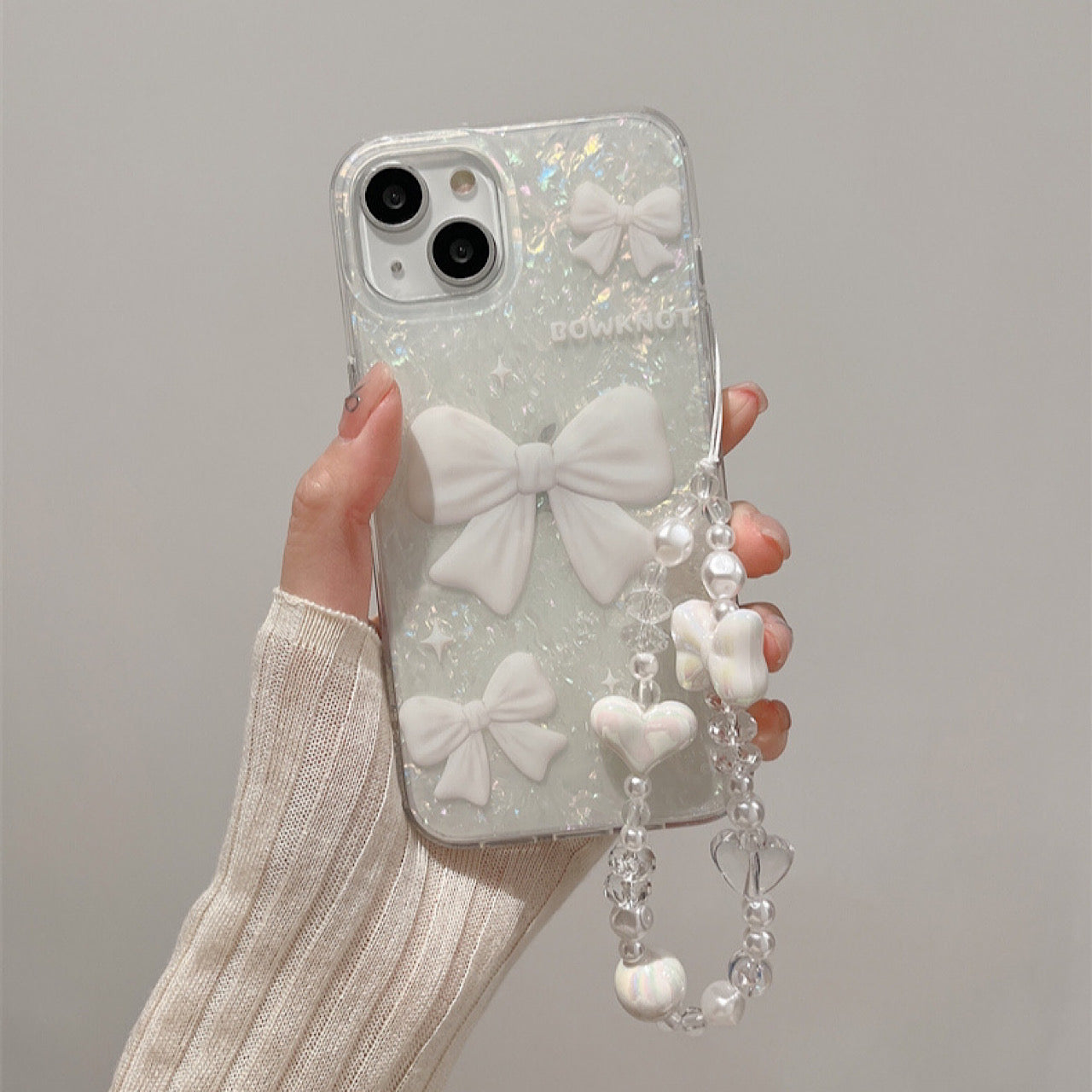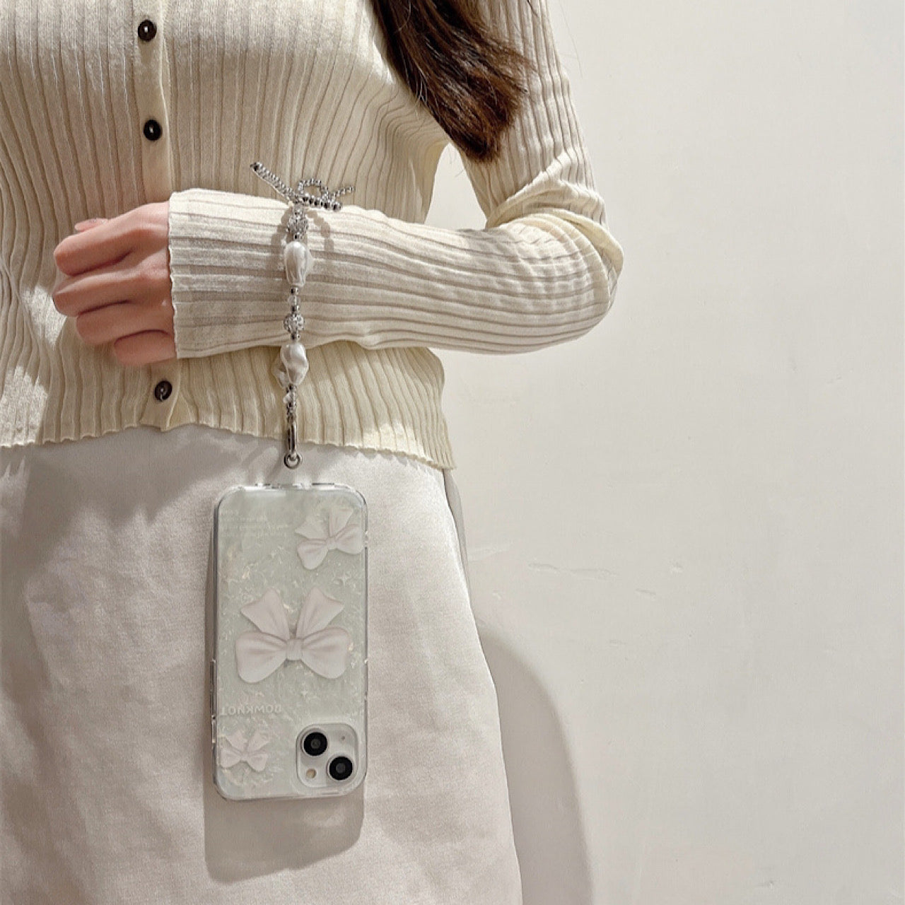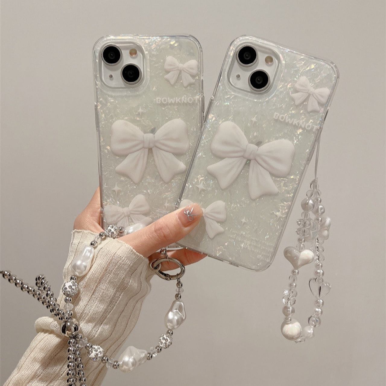 iPhoneケース おしゃれ 立体 リボン ホワイト スマホケース