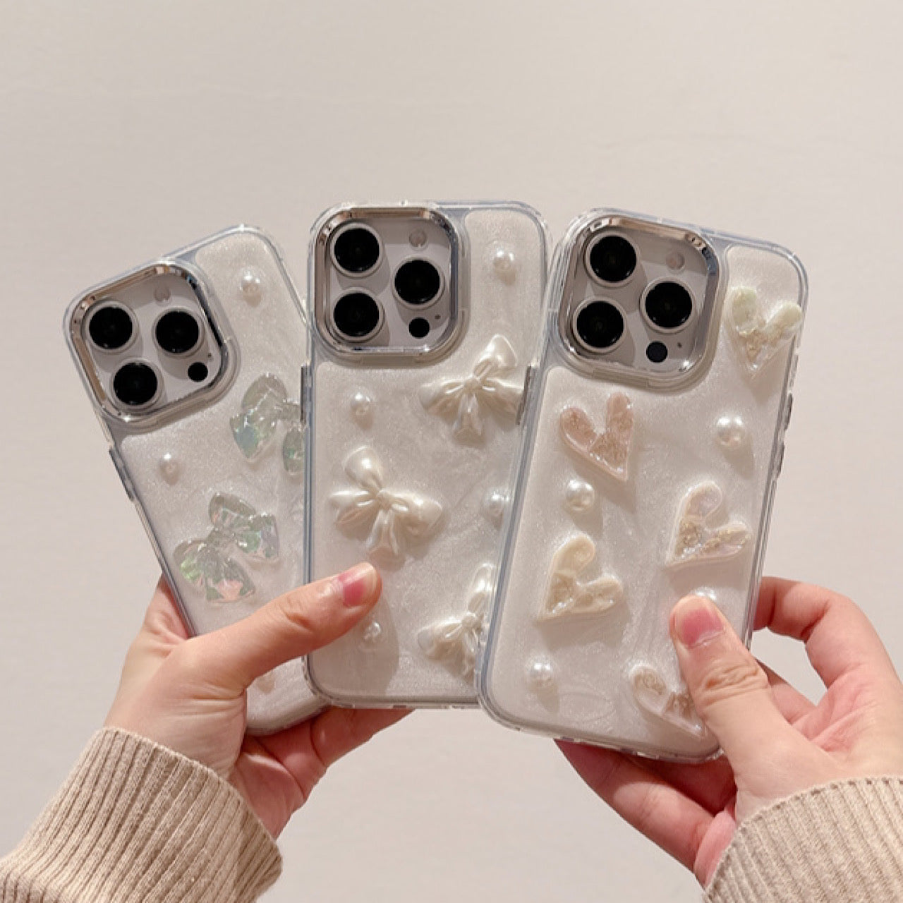 iPhoneケース おしゃれ 立体 リボン キラキラ 透明 クリア スマホケース