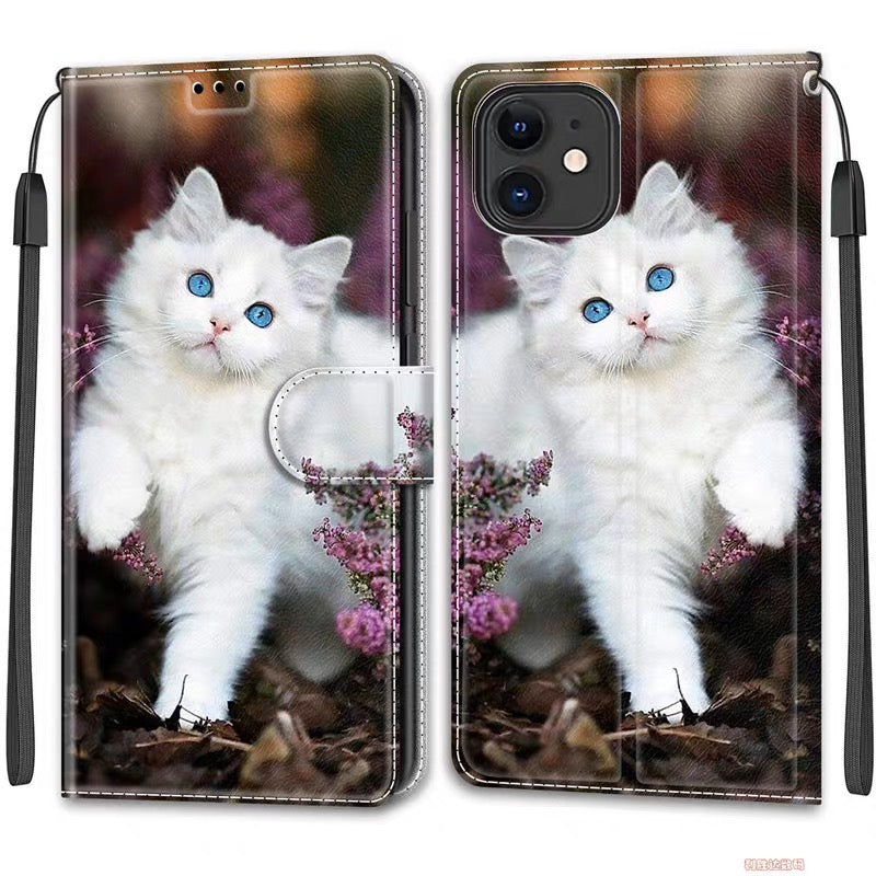 iPhoneケース かわいい ホワイト 猫 手帳型 スマホケース
