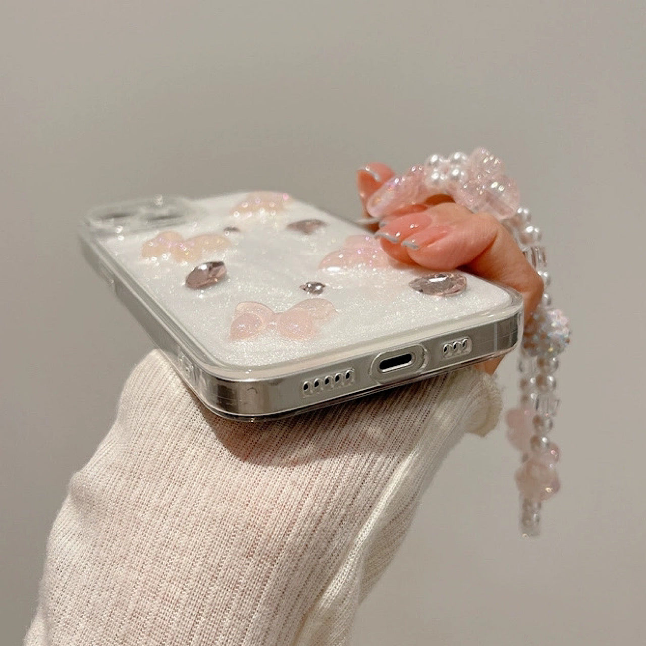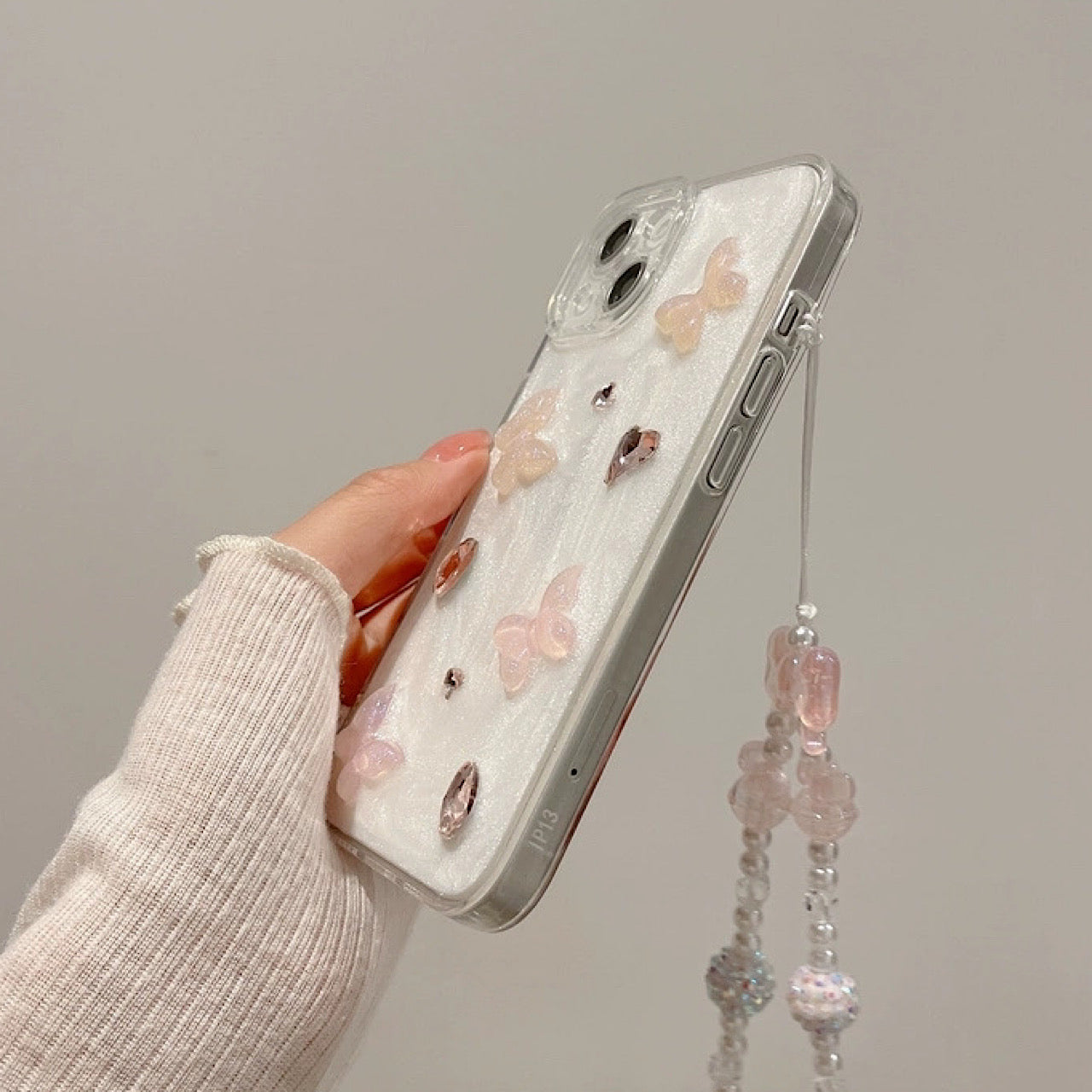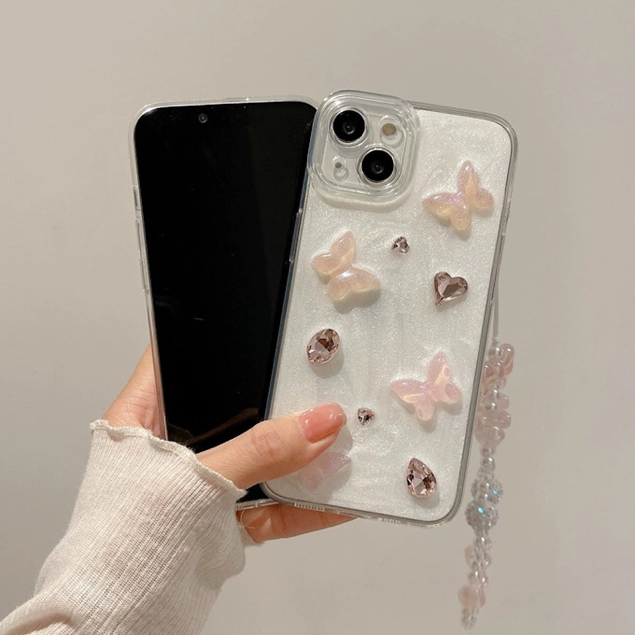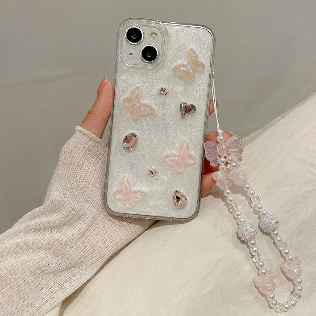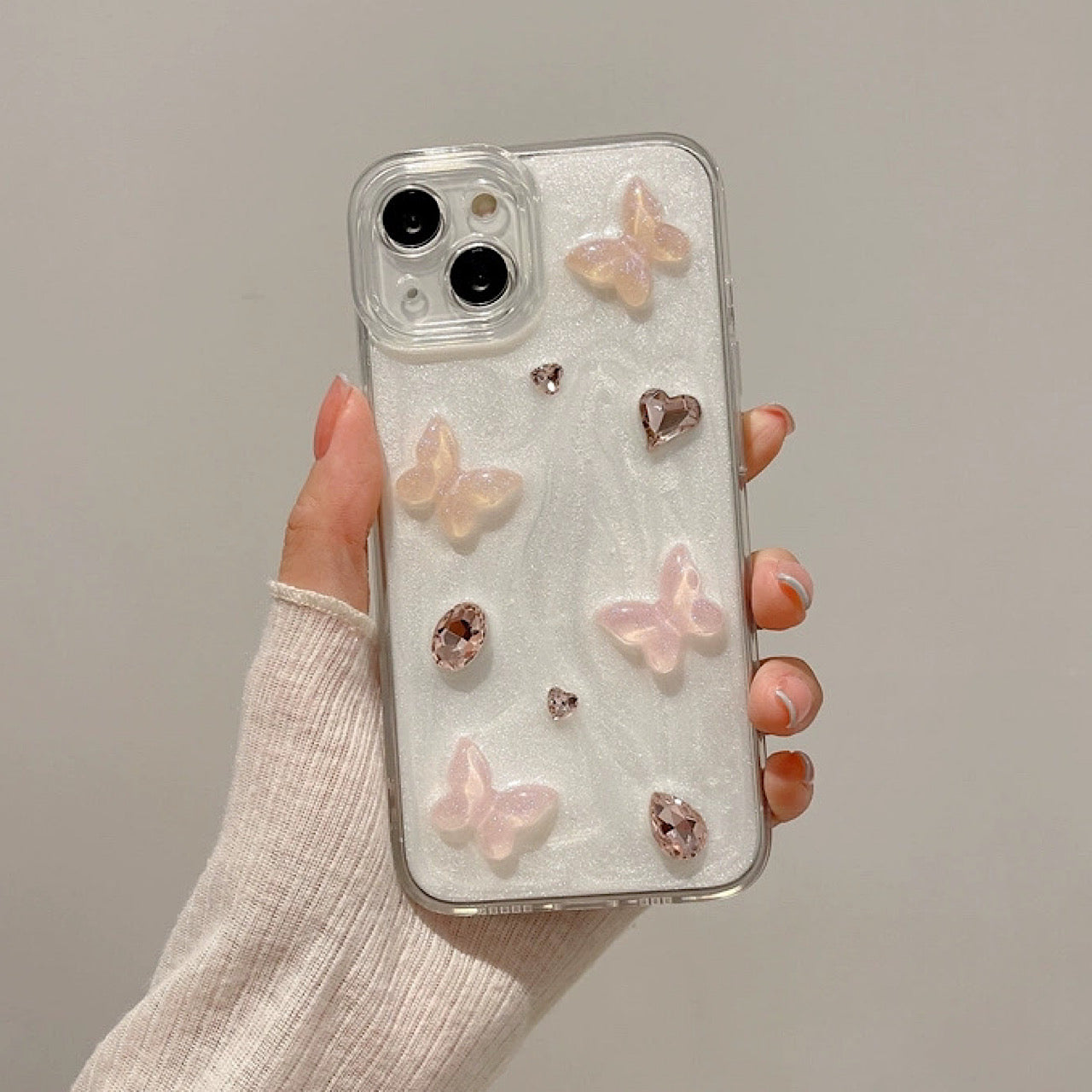 iPhoneケース かわいい 立体 ピンク 蝶々 ホワイト スマホケース