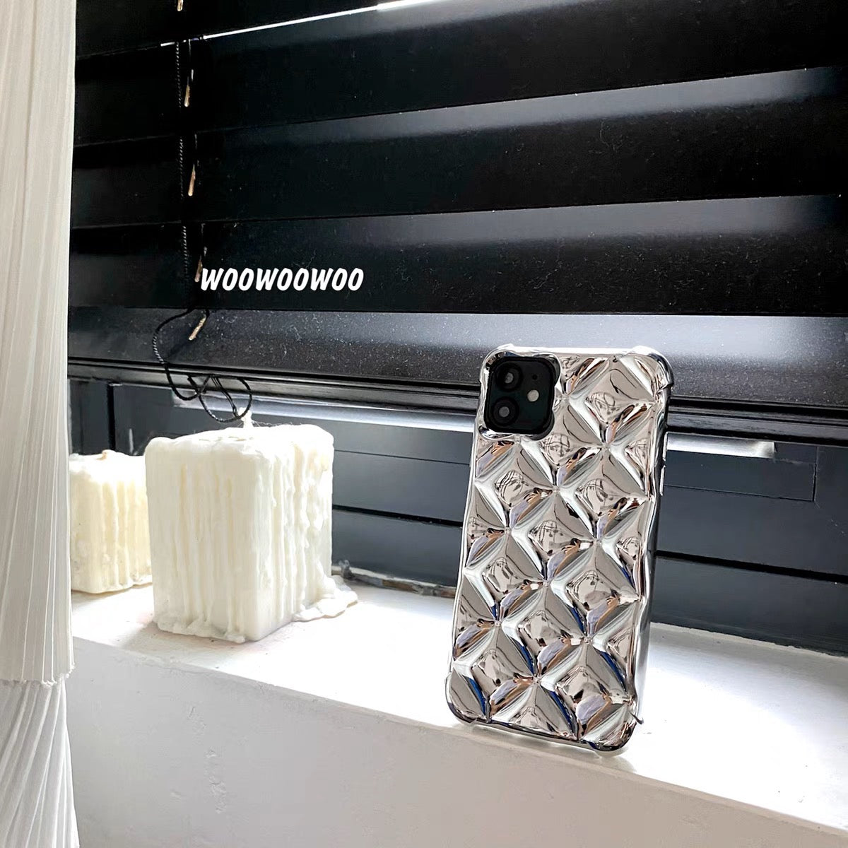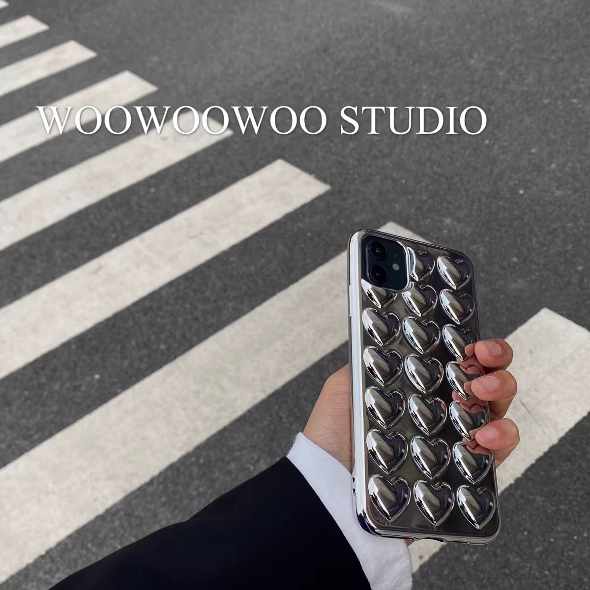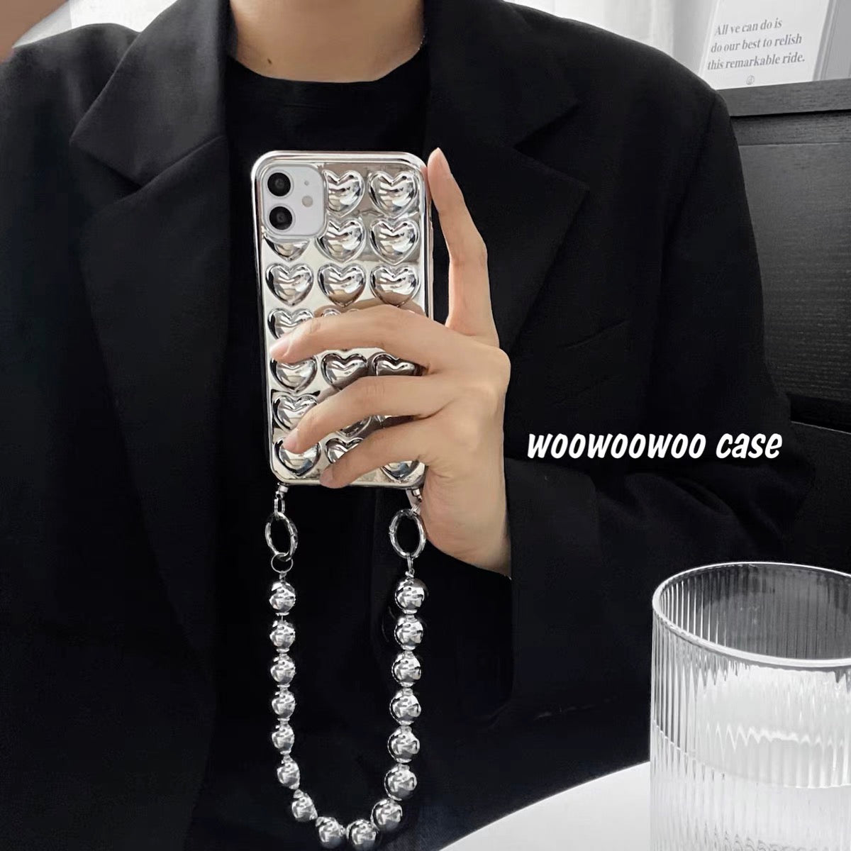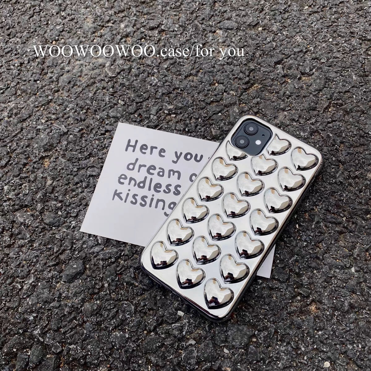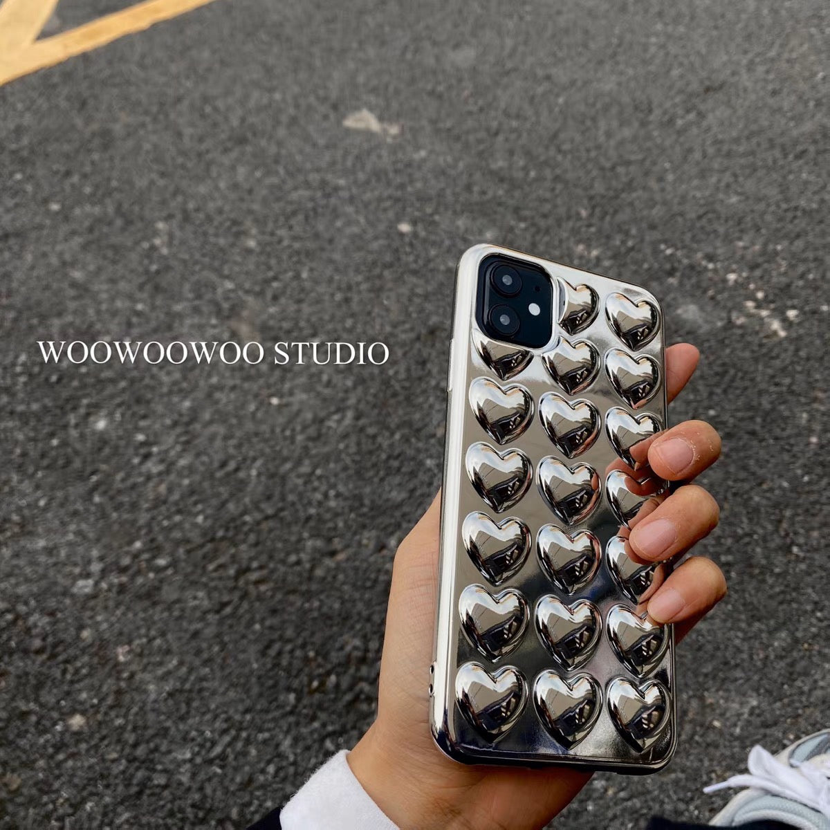 iPhoneケース おしゃれ シルバー 立体 ハート スマホケース
