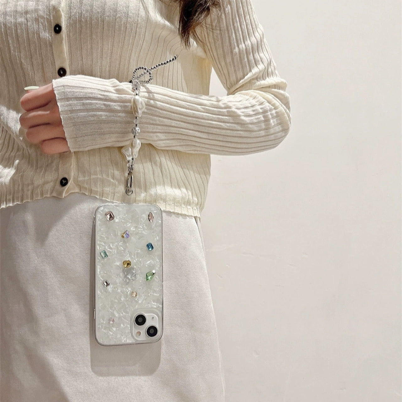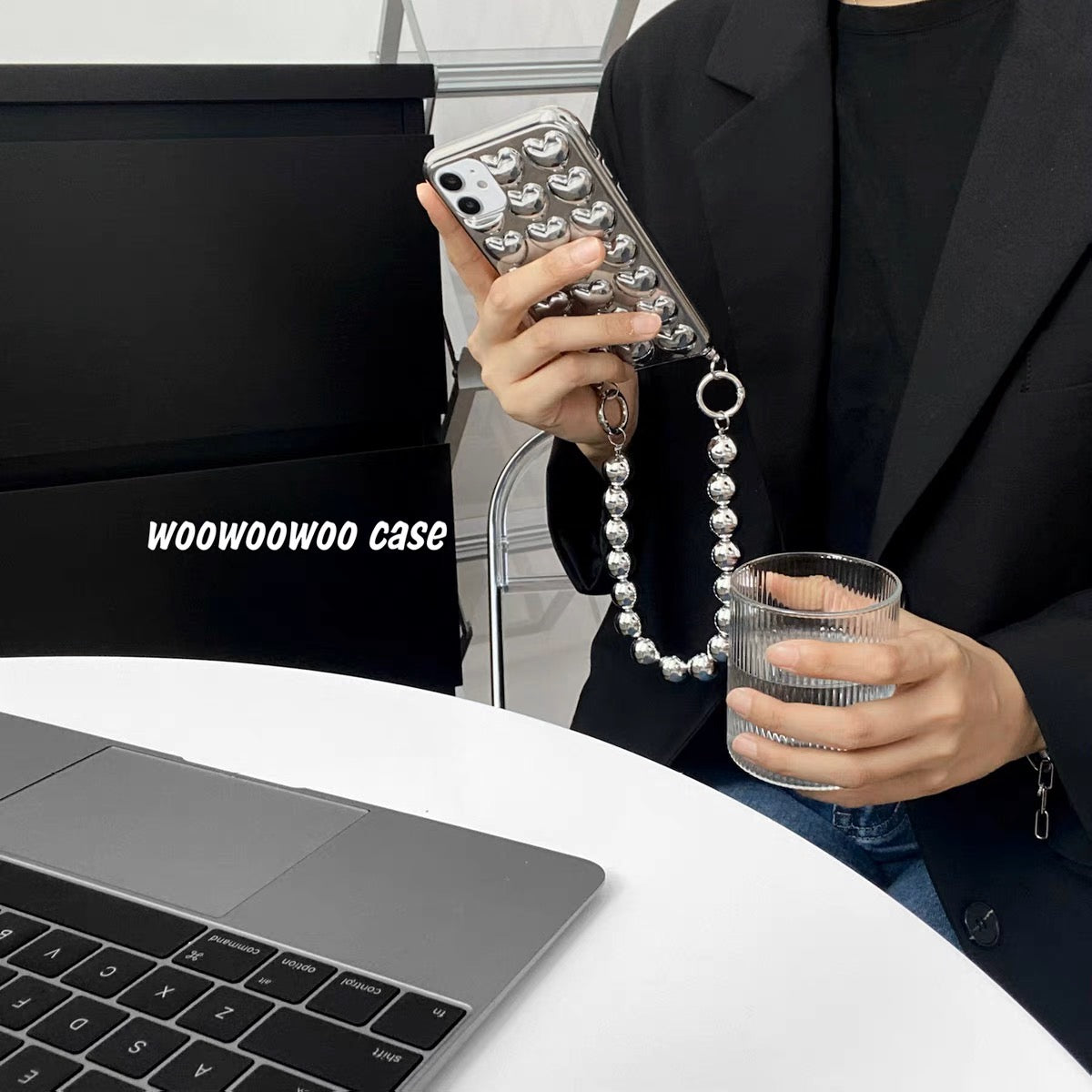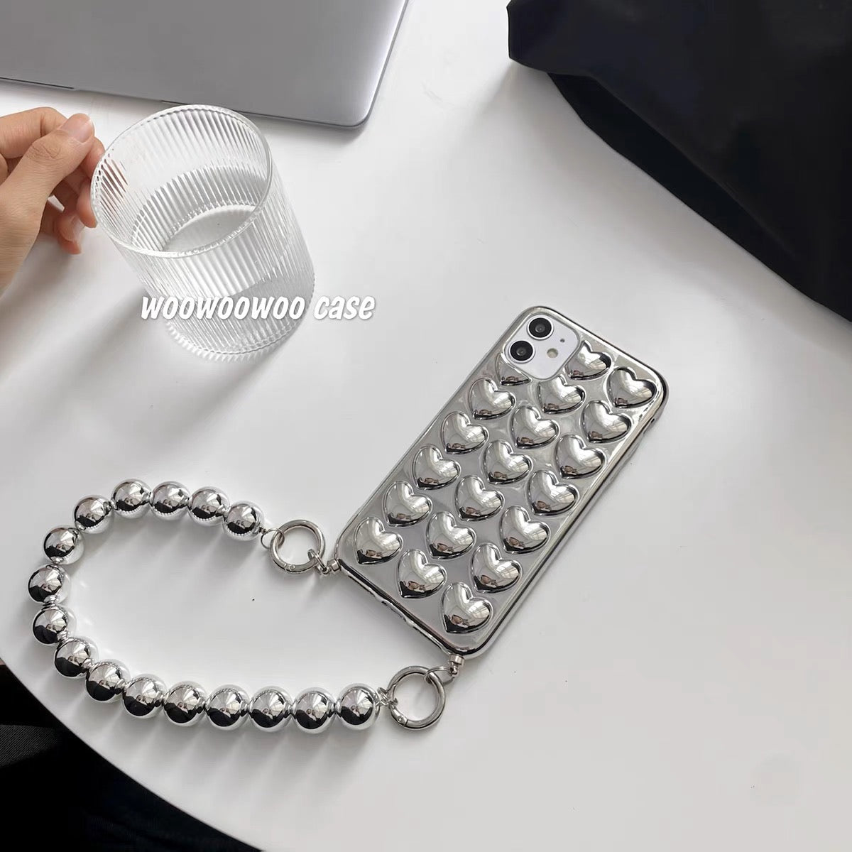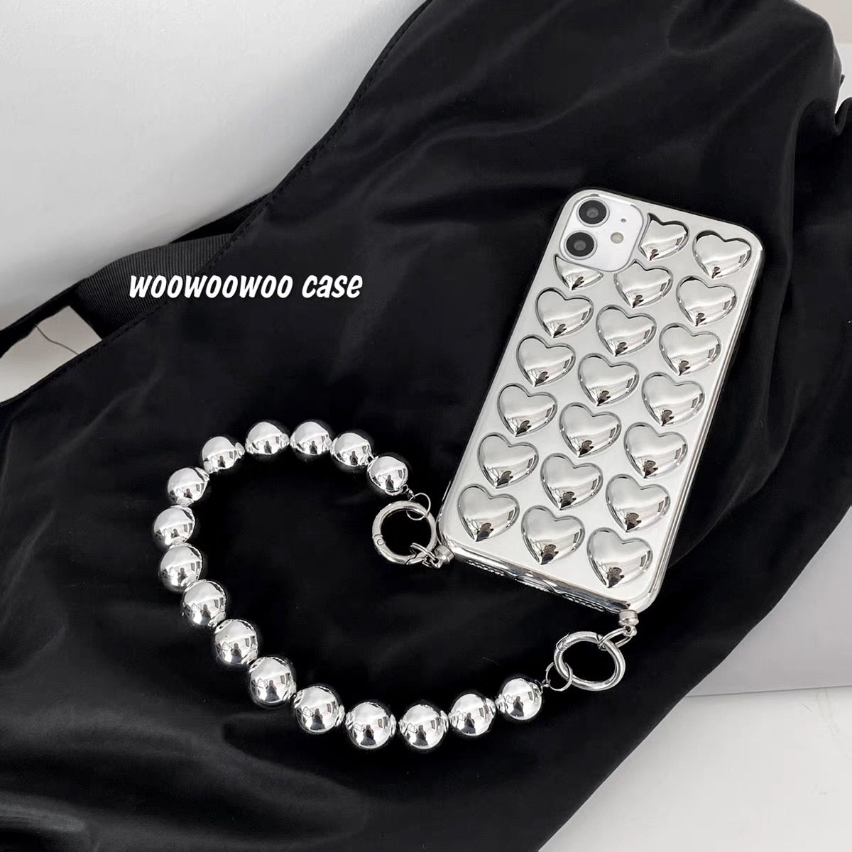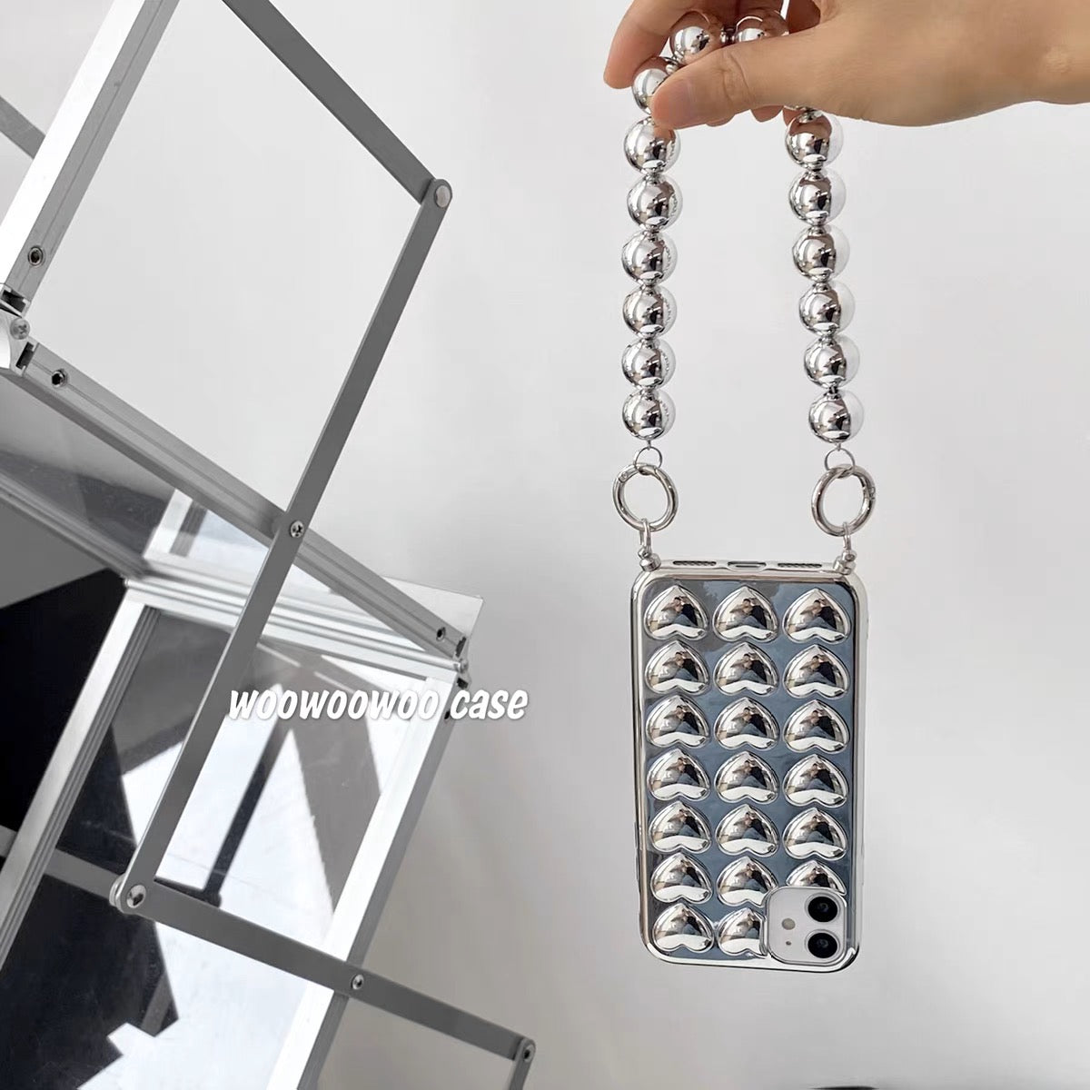 iPhoneケース おしゃれ シルバー ハート ストラップ付き スマホケース