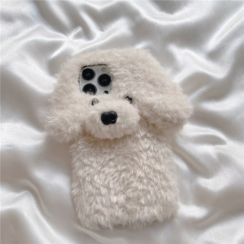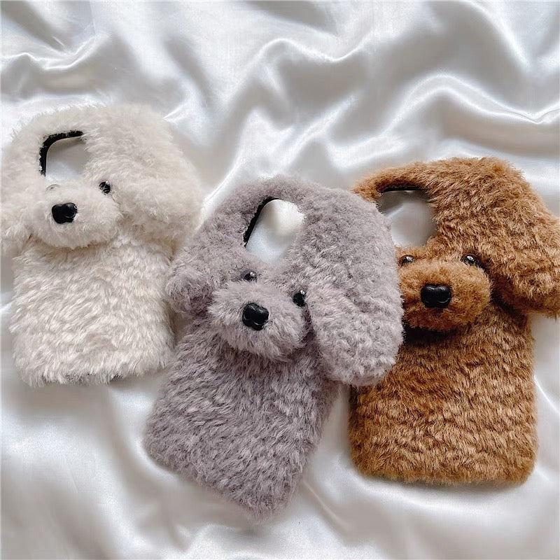 iPhoneケース もふもふ 布地 かわいい 犬 スマホケース