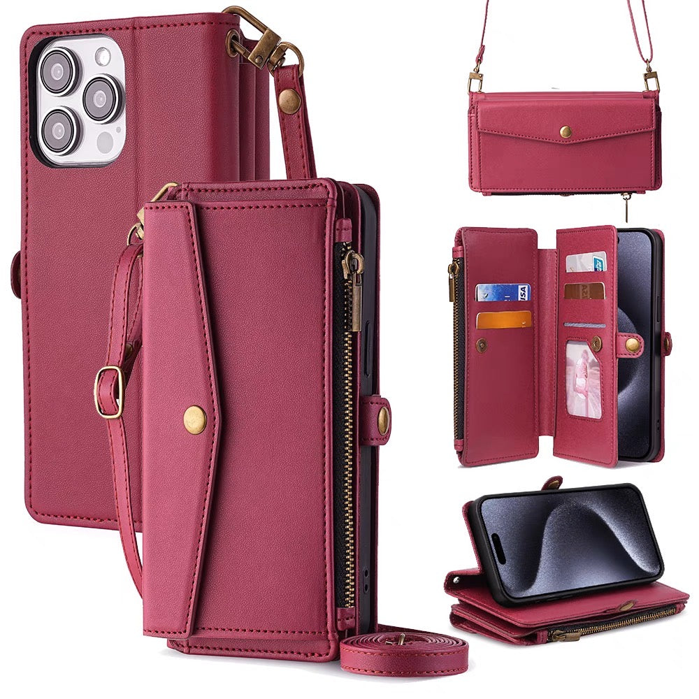 iPhoneケース おしゃれ 革質 ショルダー ストラップ 手帳型 スマホケース