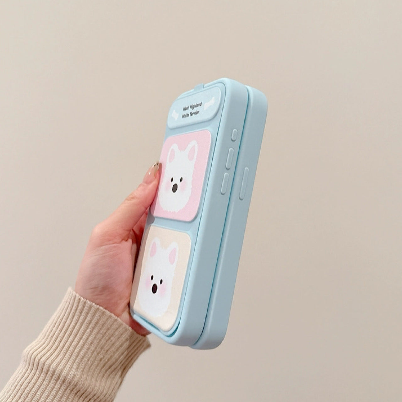 iPhoneケース かわいい 白犬 スタンド付き スマホケース