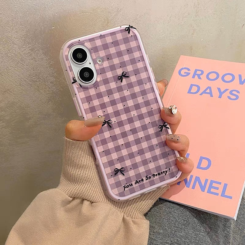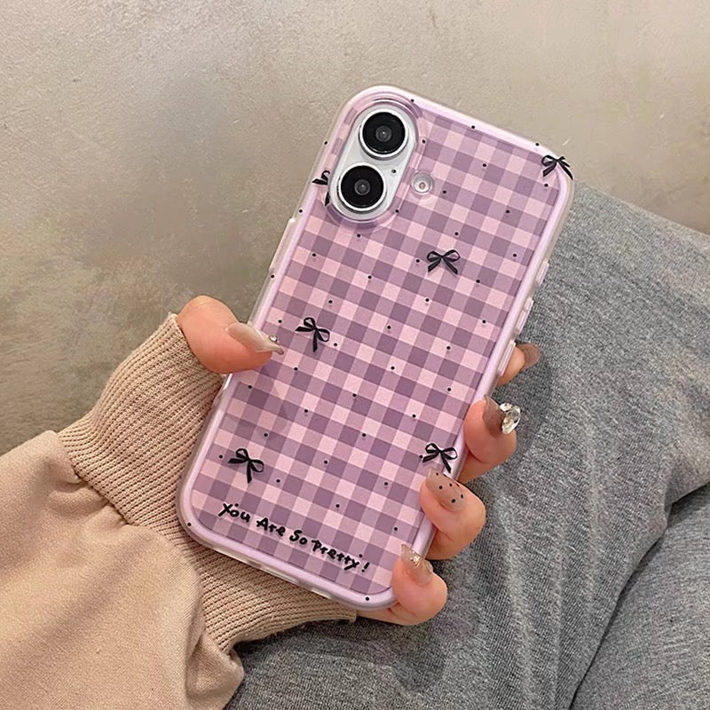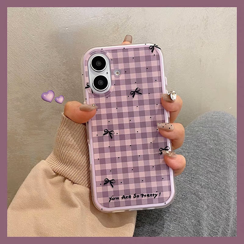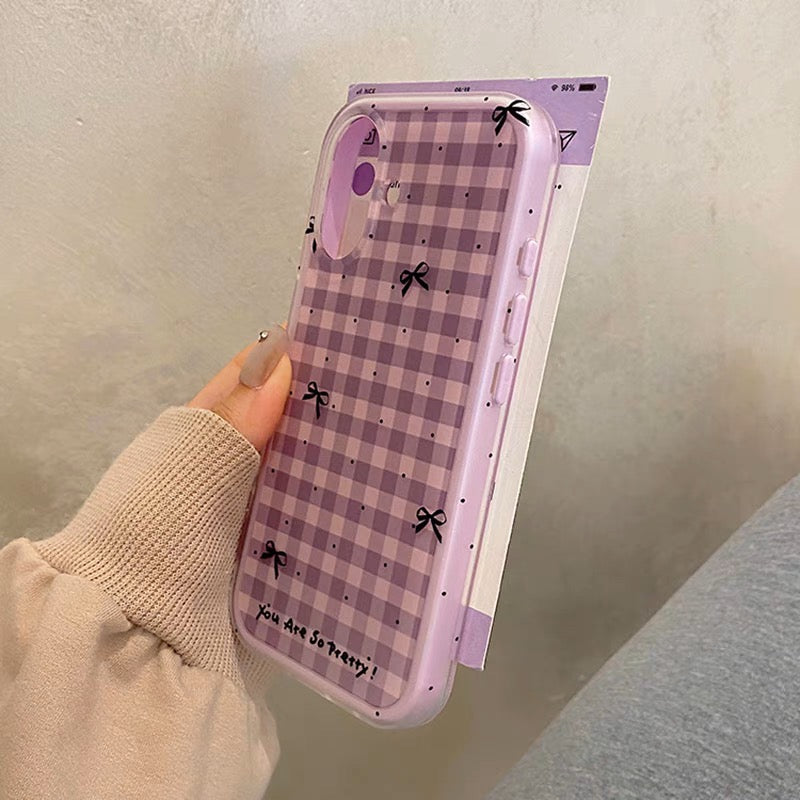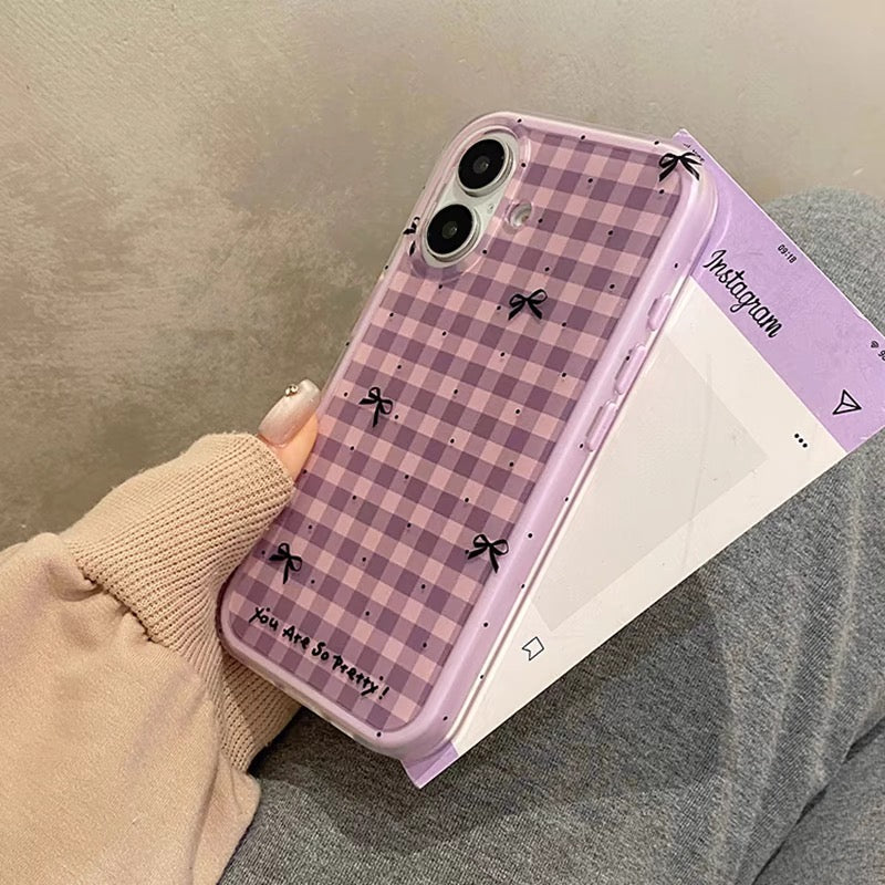iPhoneケース おしゃれ リボン パープル チェック柄 スマホケース