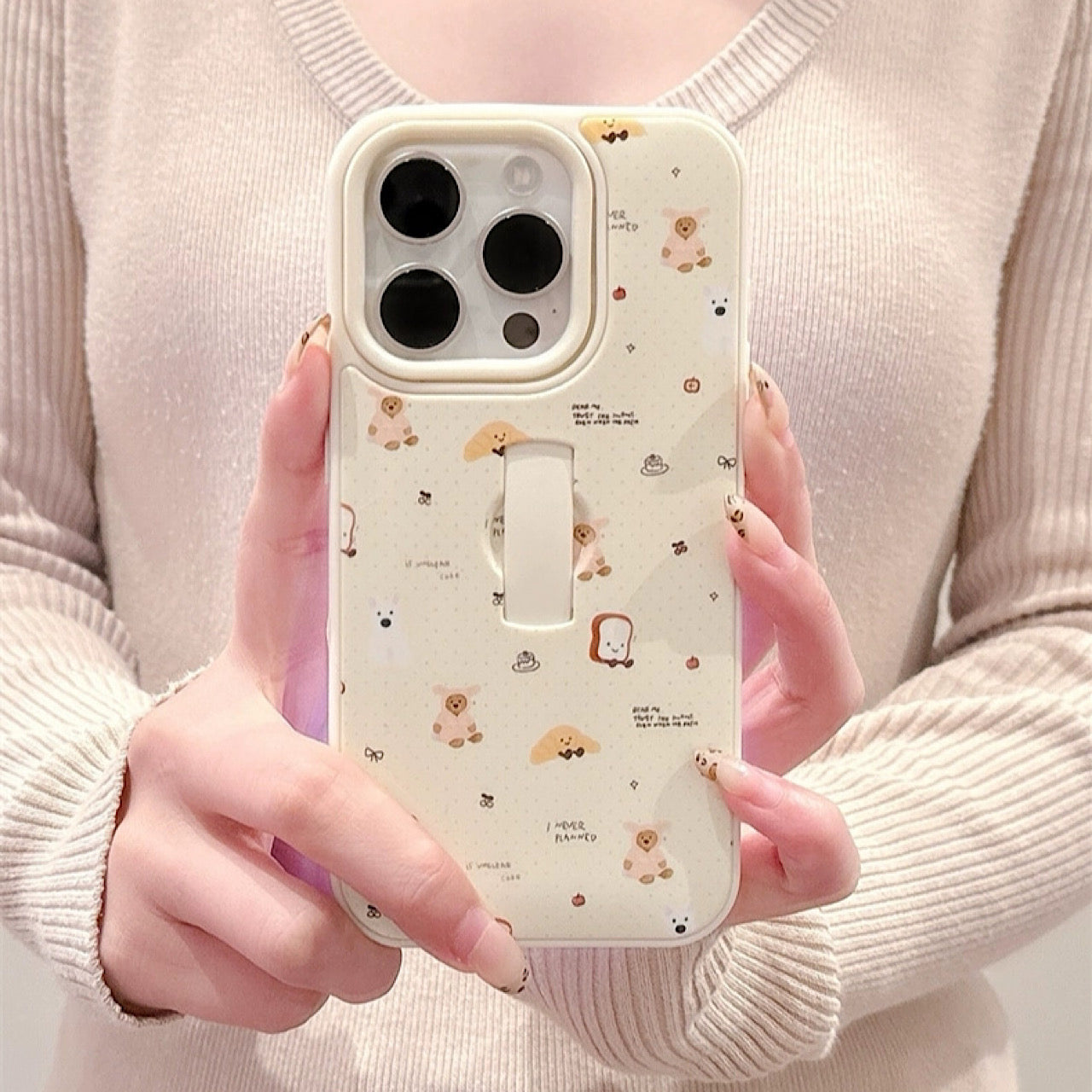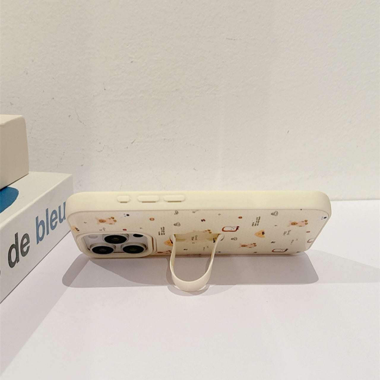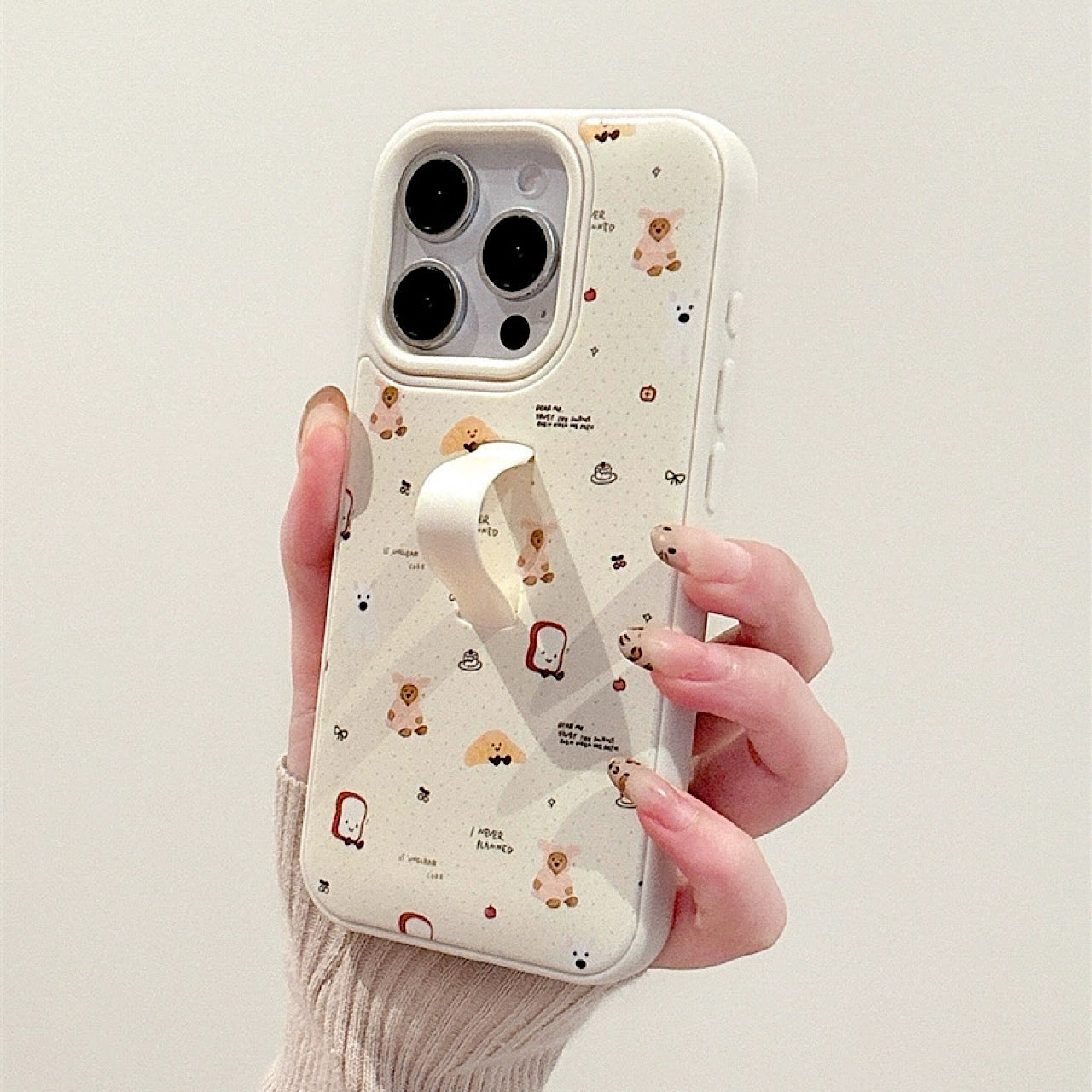 iPhoneケース かわいい 小熊 パン 持ち手付き スマホケース
