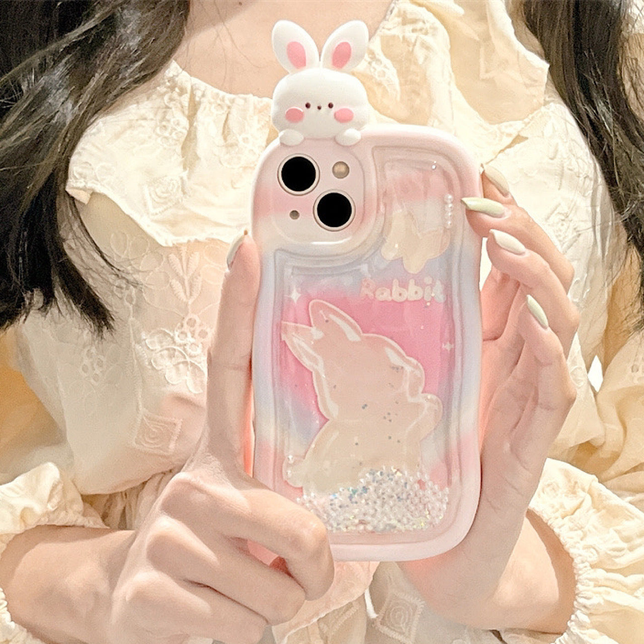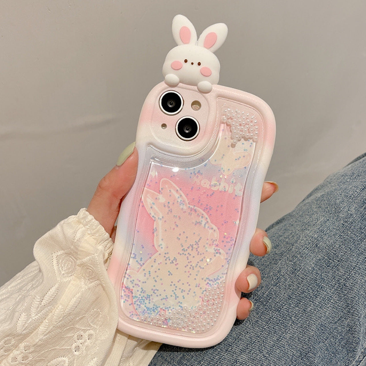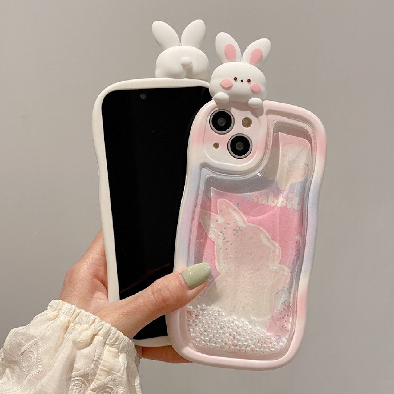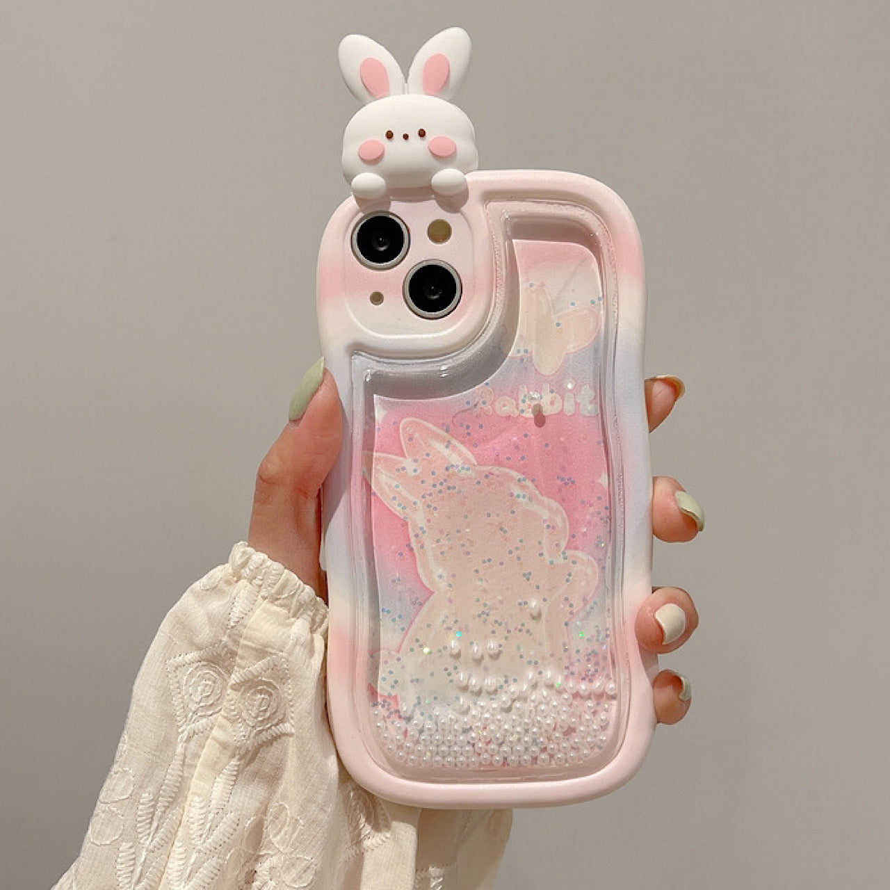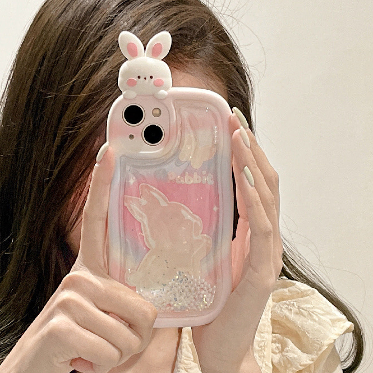 iPhoneケース かわいい 立体 うさぎ ピンク×ホワイト スマホケース
