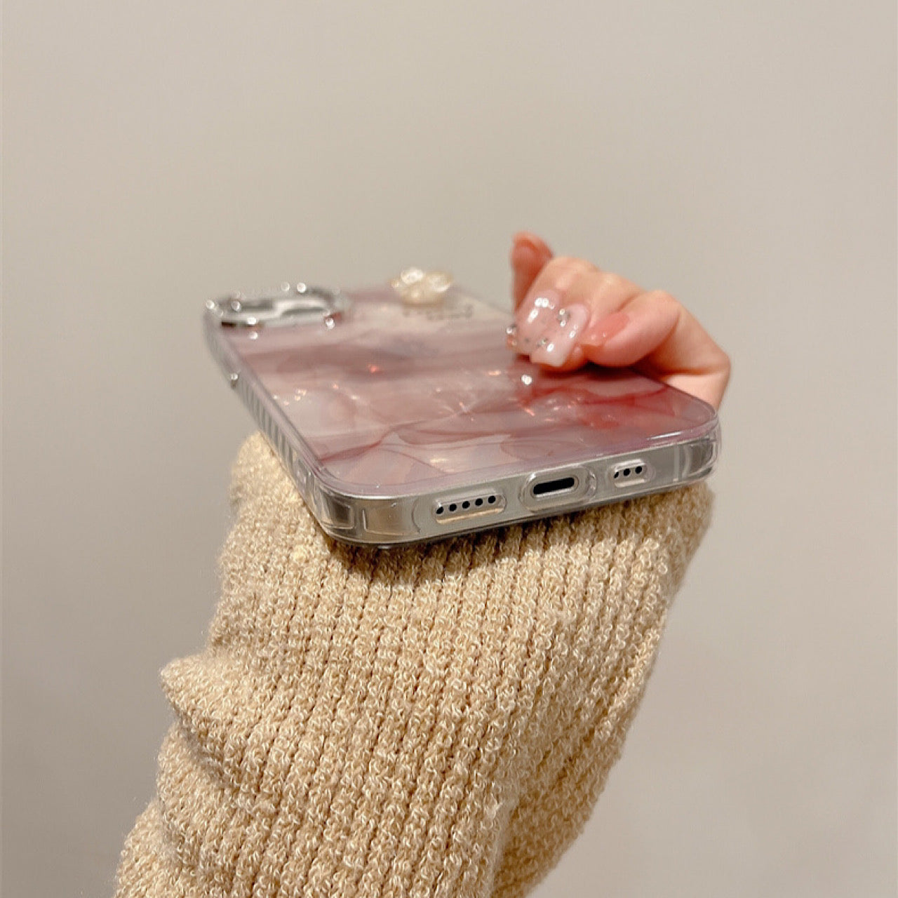 iPhoneケース おしゃれ 立体 お花 大理石風 スマホケース