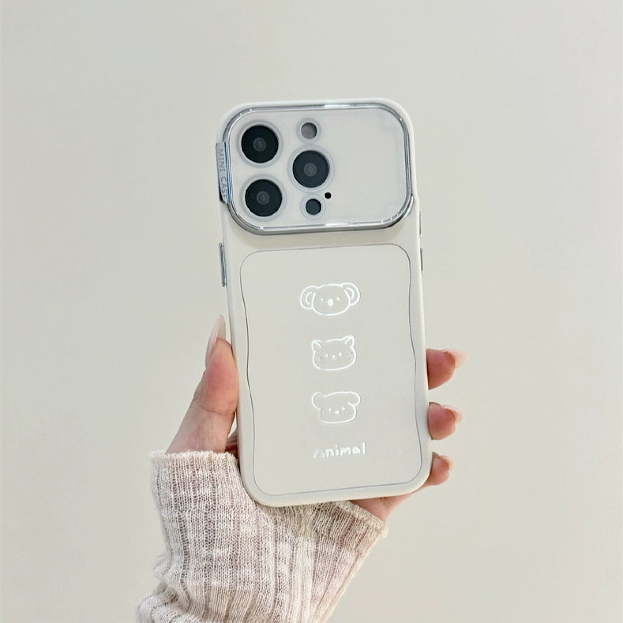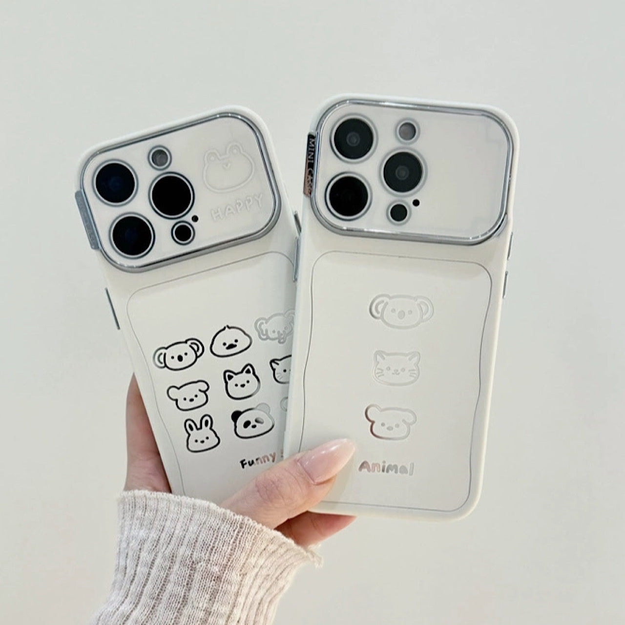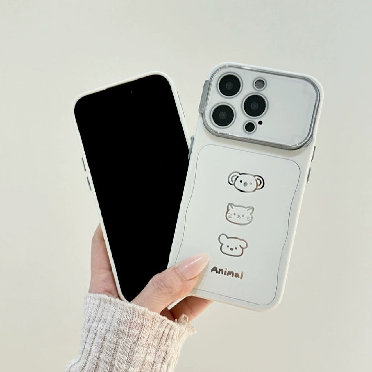 iPhoneケース かわいい アニマル ホワイト カメラ保護付き スマホケース