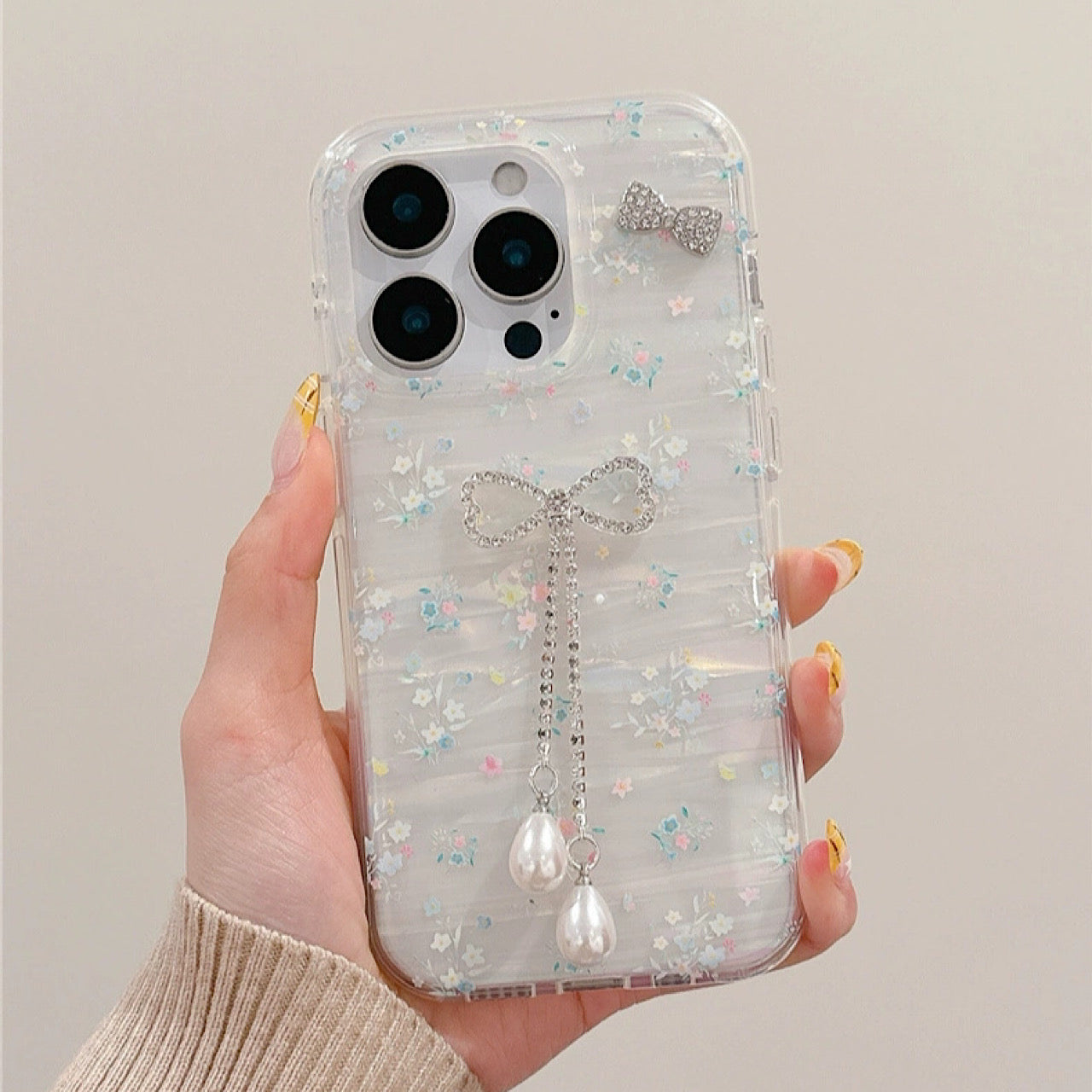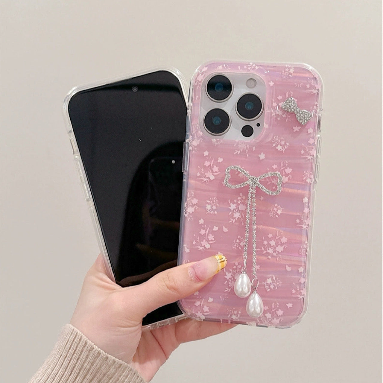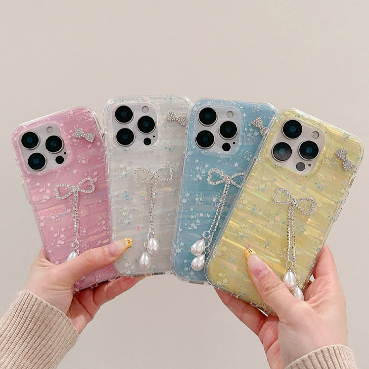 iPhoneケース おしゃれ 立体 リボン チャーム付き スマホケース