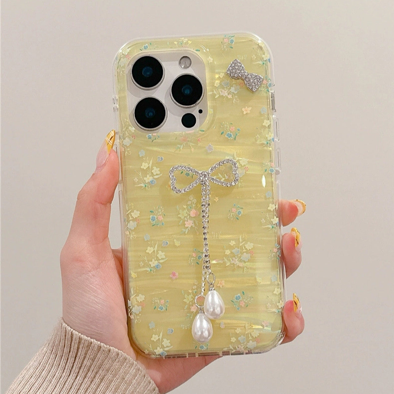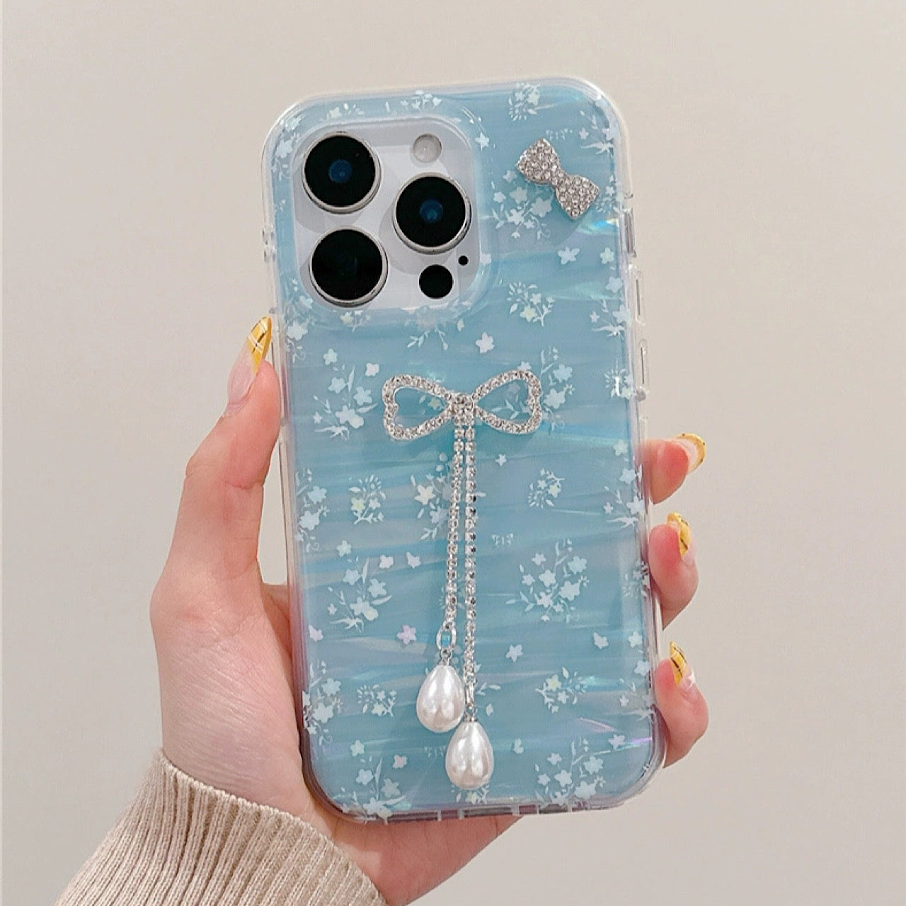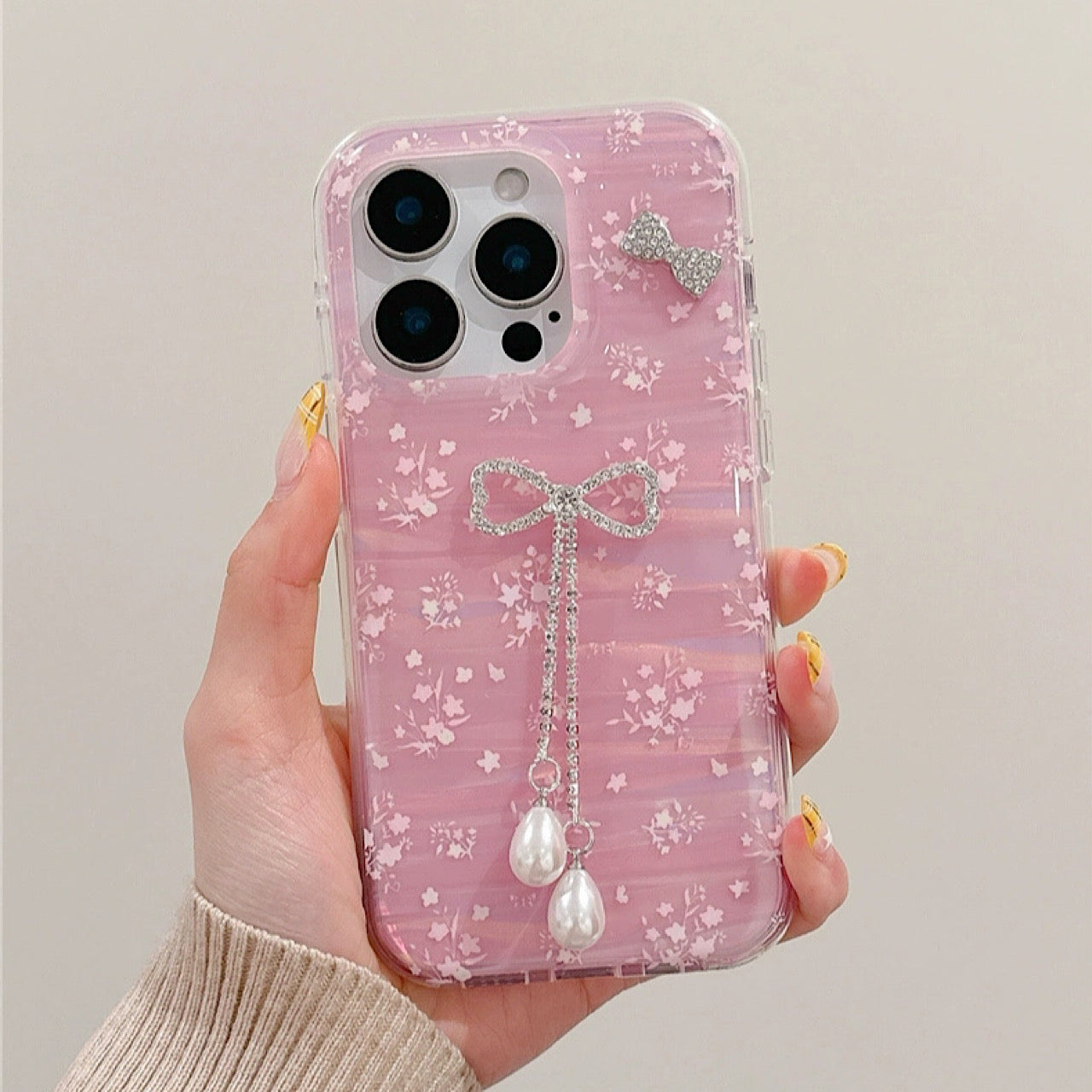 iPhoneケース おしゃれ 立体 リボン チャーム付き スマホケース