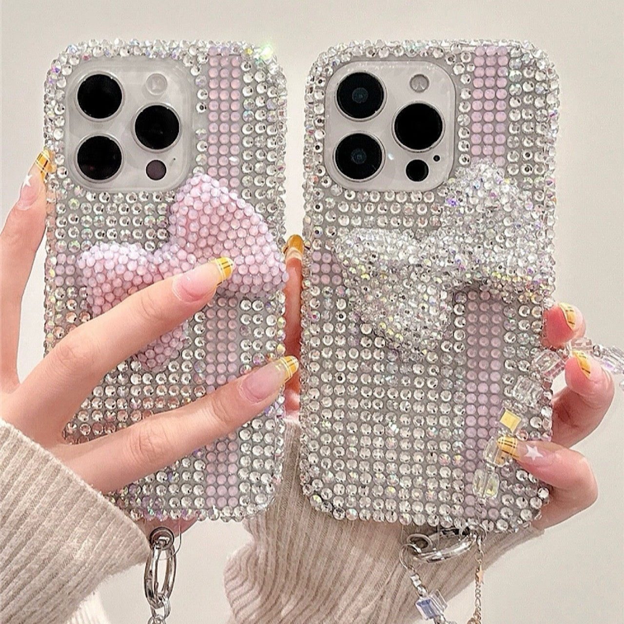 iPhoneケース おしゃれ 立体 リボン キラキラ ダイヤモンド スマホケース