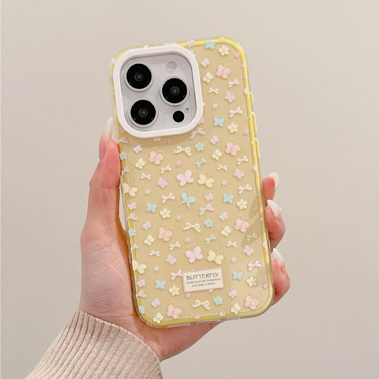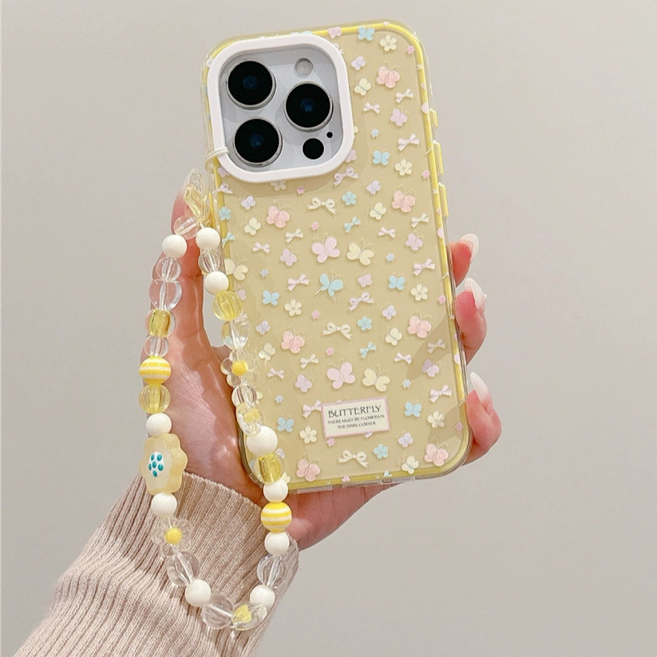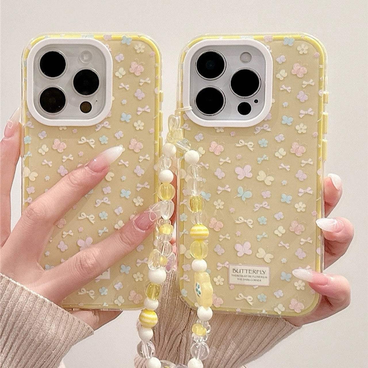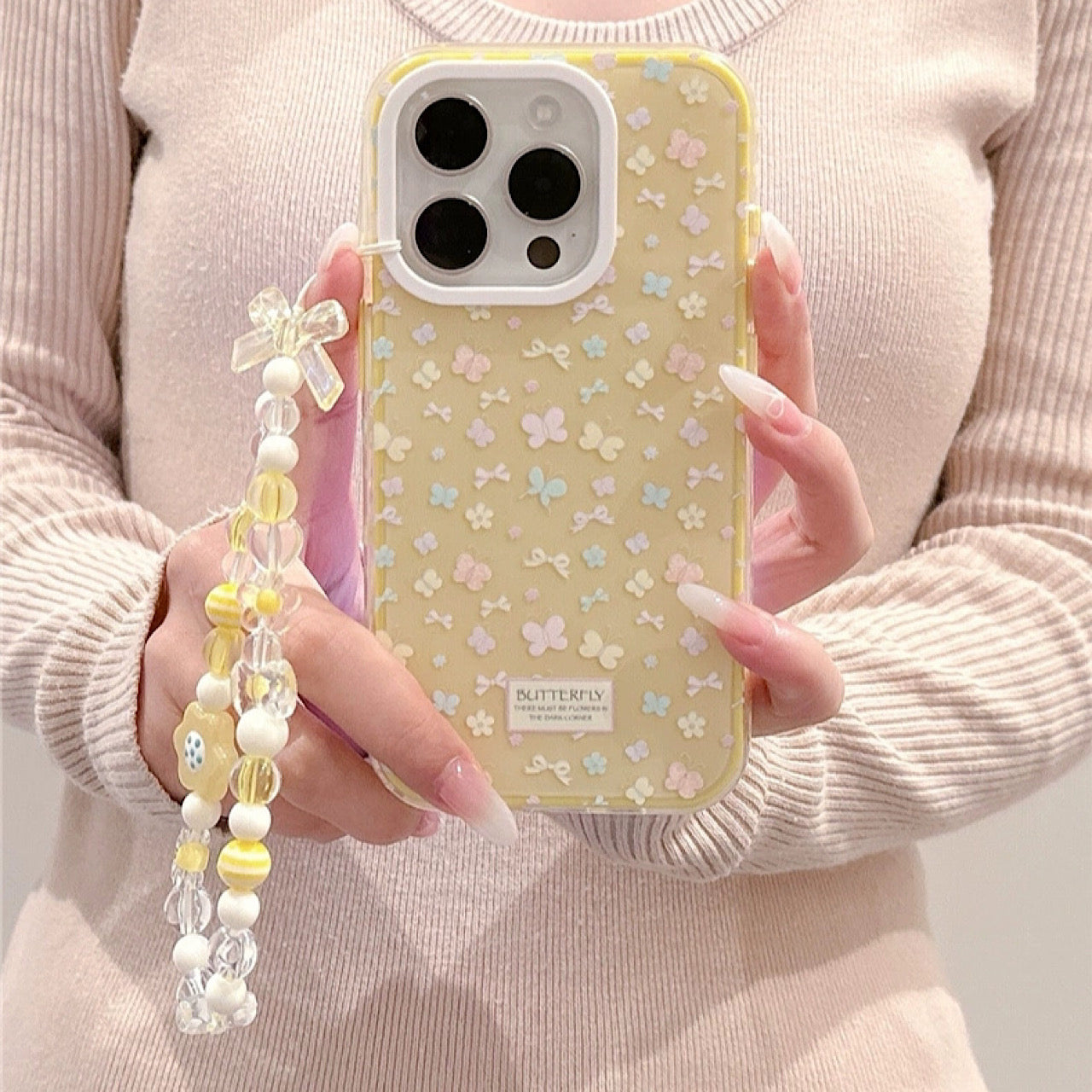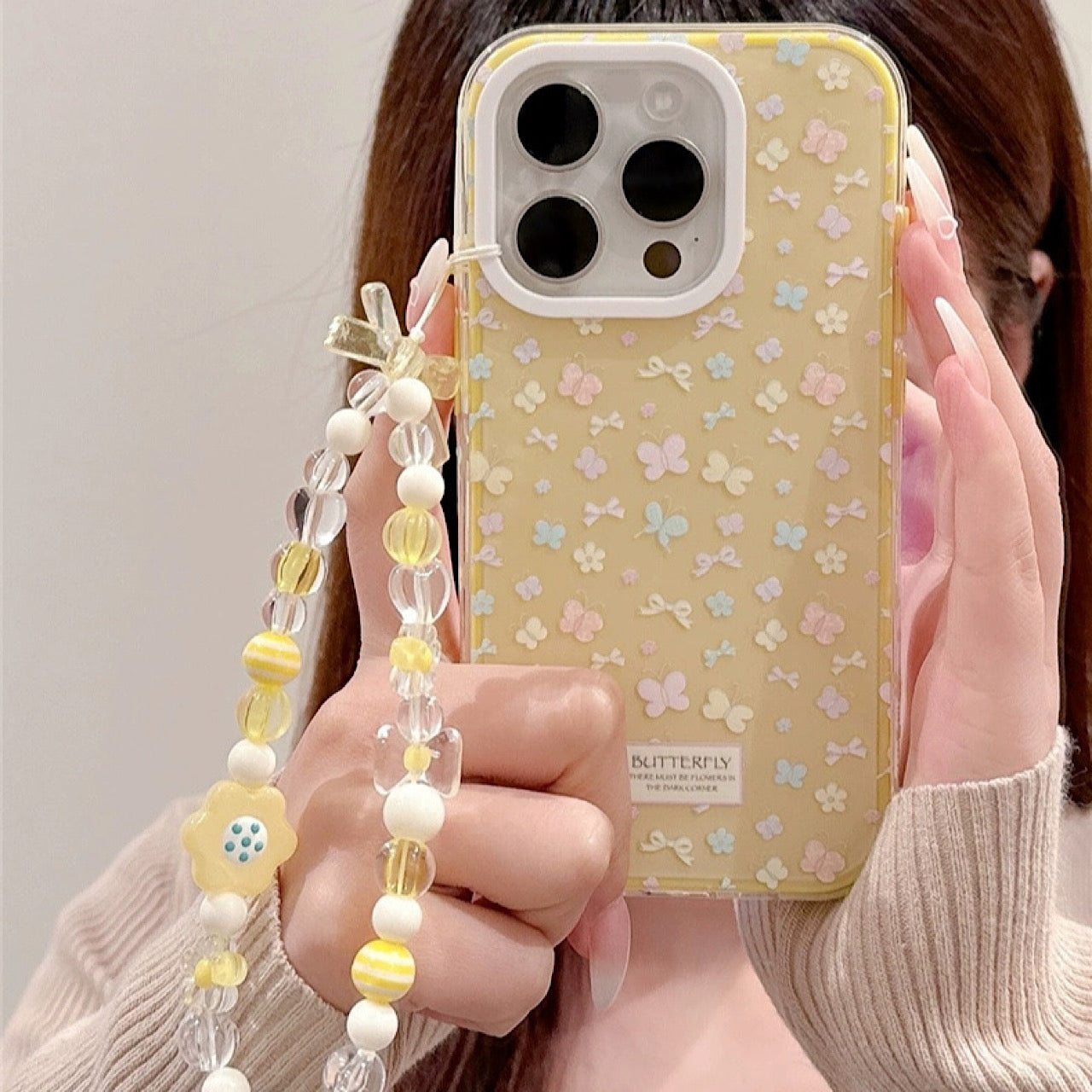 iPhoneケース かわいい カラフル 蝶々 イエロー スマホケース