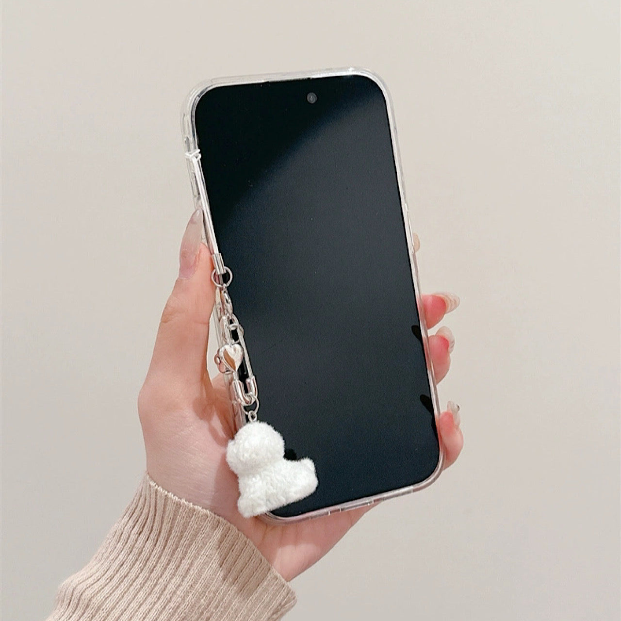 iPhoneケース かわいい 白犬 丸型 スマホケース