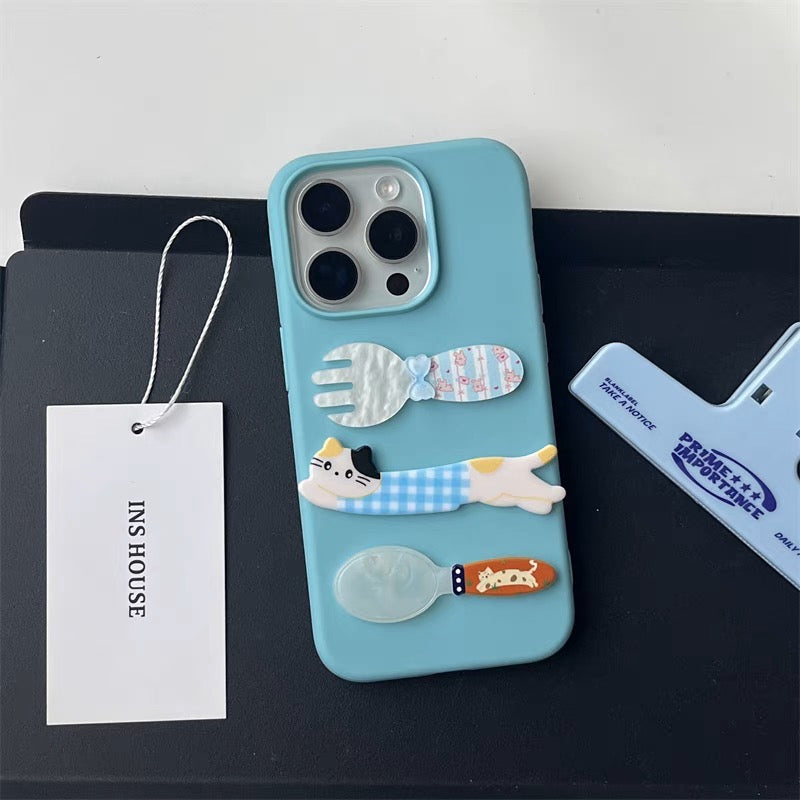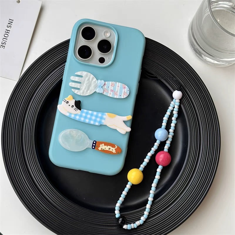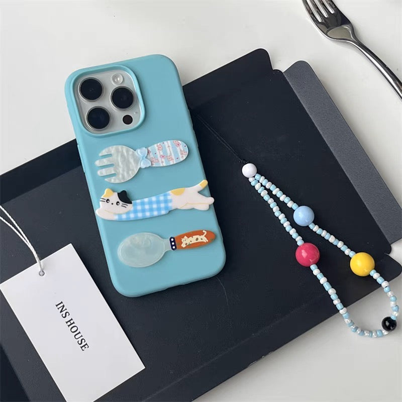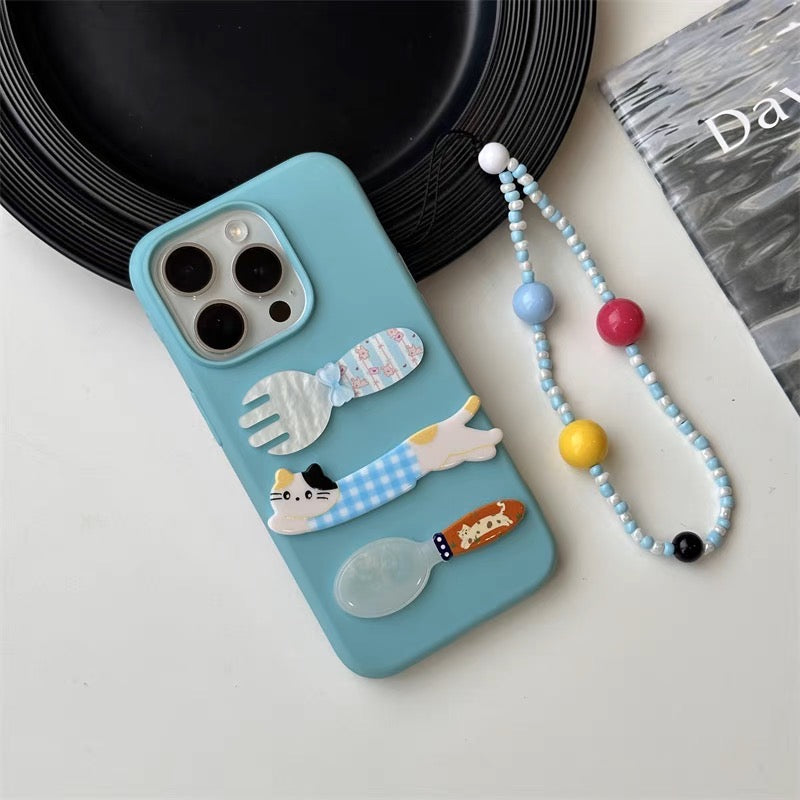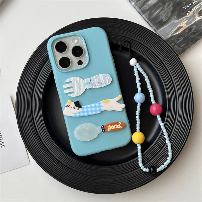 iPhoneケース かわいい 猫 フォーク&スプーン スマホケース