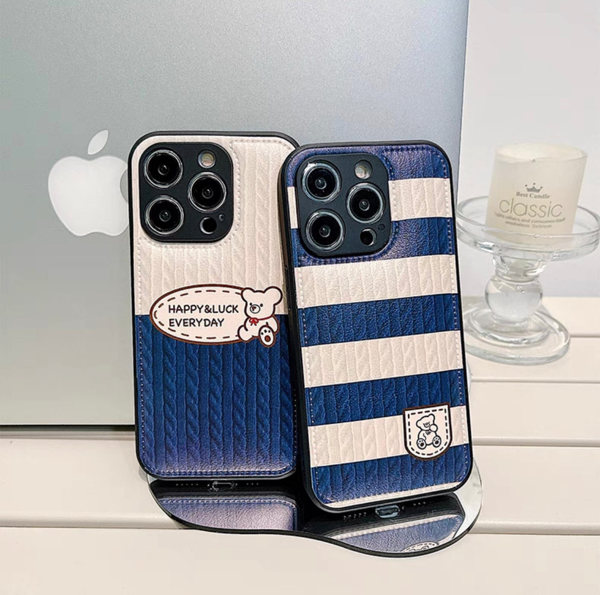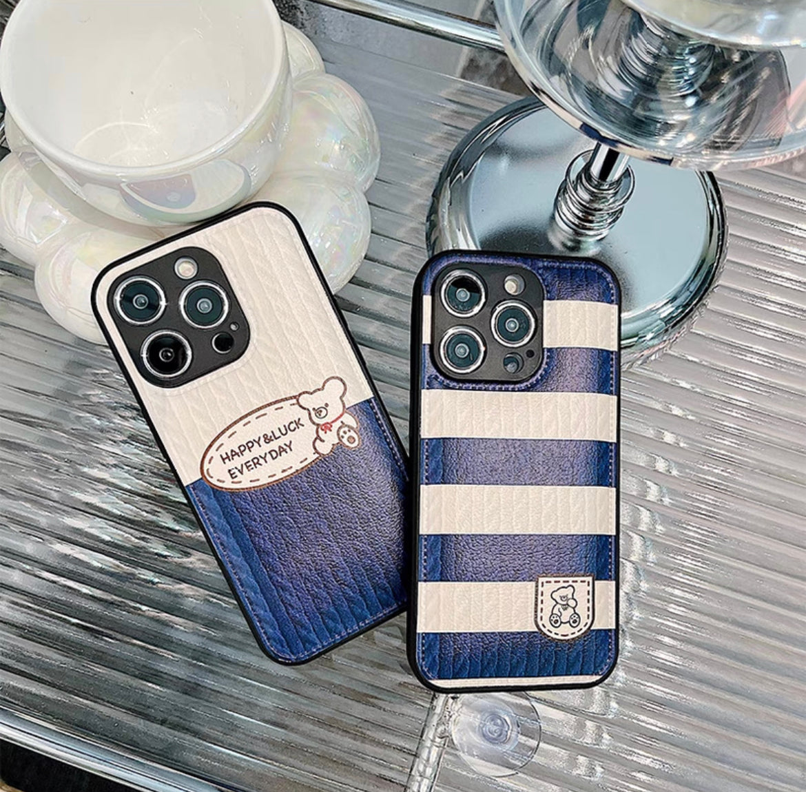 iPhoneケース 白青 柔らかい かわいい くま スマホケース
