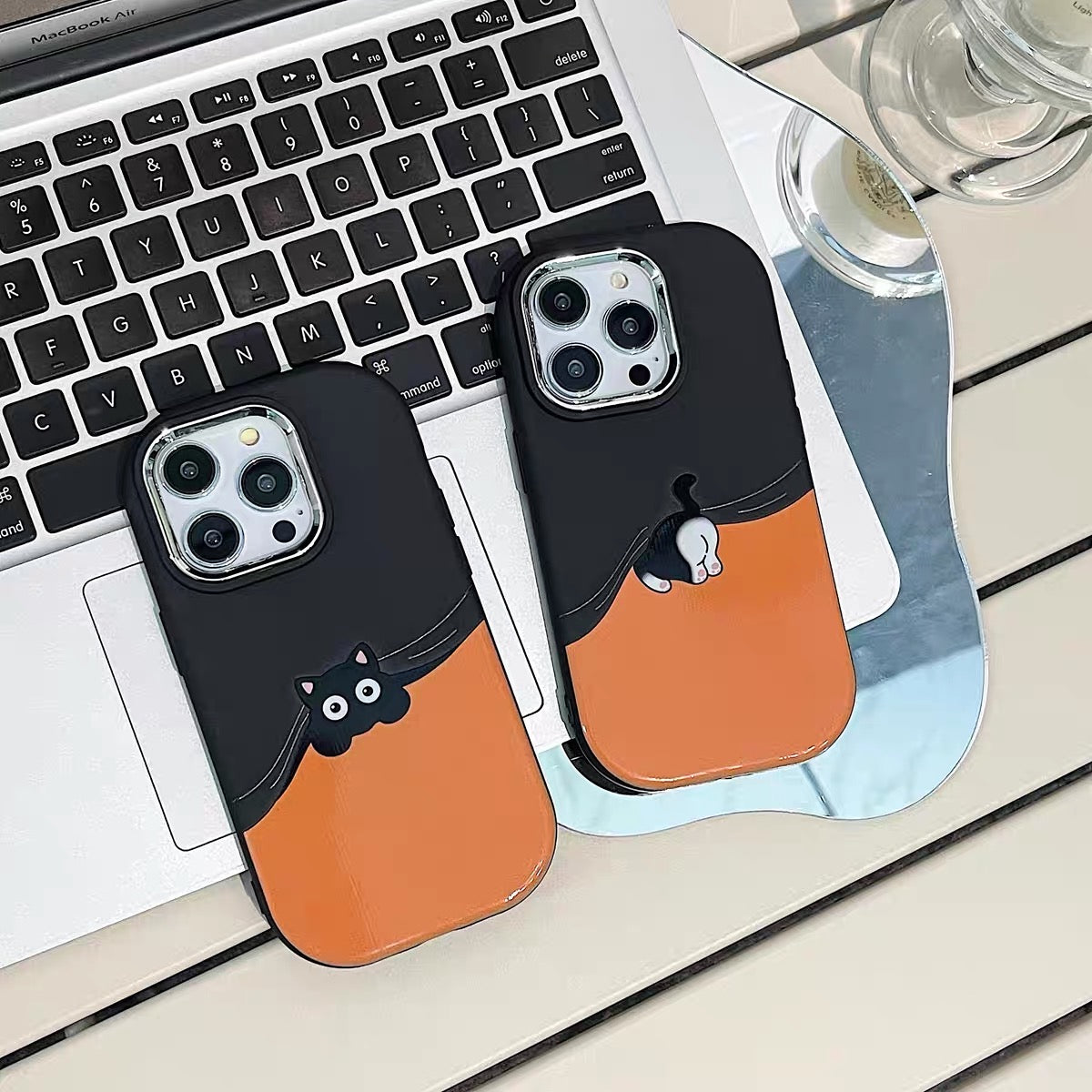 iPhoneケース 2配 黒猫 かわいい スマホケース