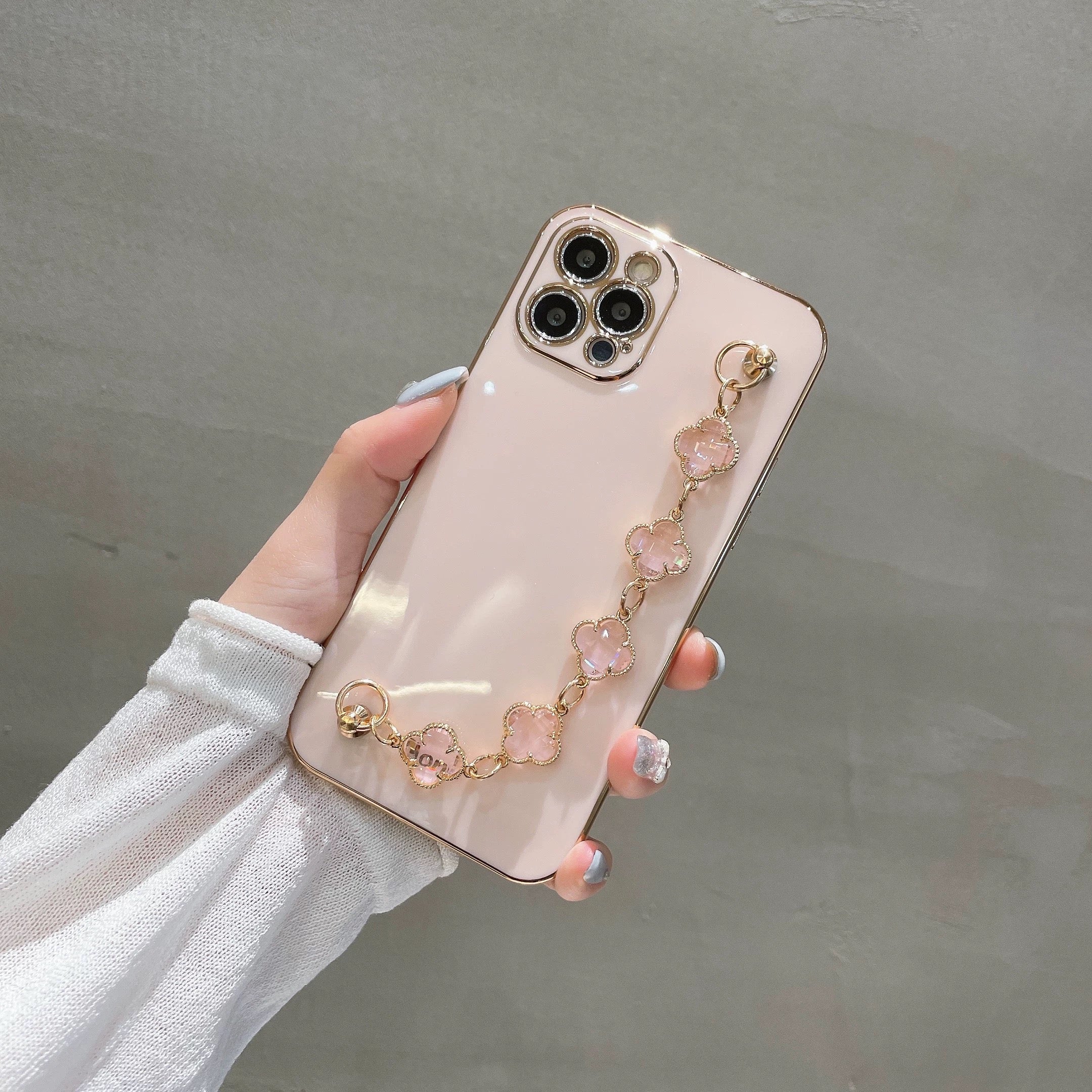 iPhoneケース おしゃれ 水晶 四葉 クローバー ピンク スマホケース