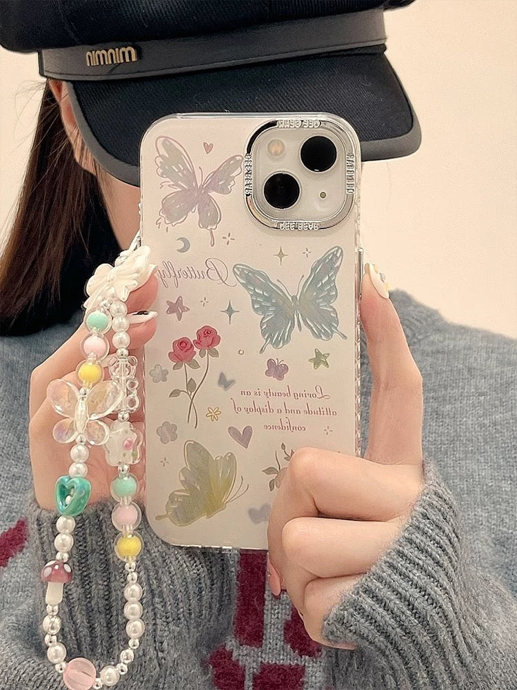 iPhoneケース カラフル 蝶々 フラワー おしゃれ スマホケース