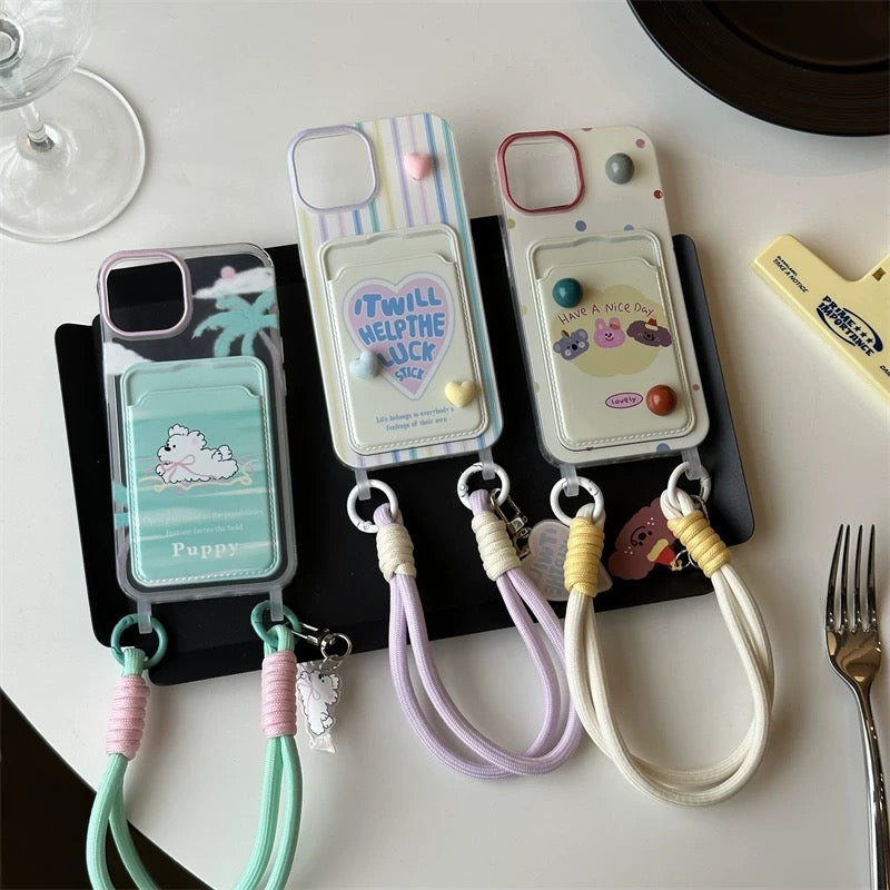 iPhoneケース ポケット付き おしゃれ 動物 ハート スマホケース